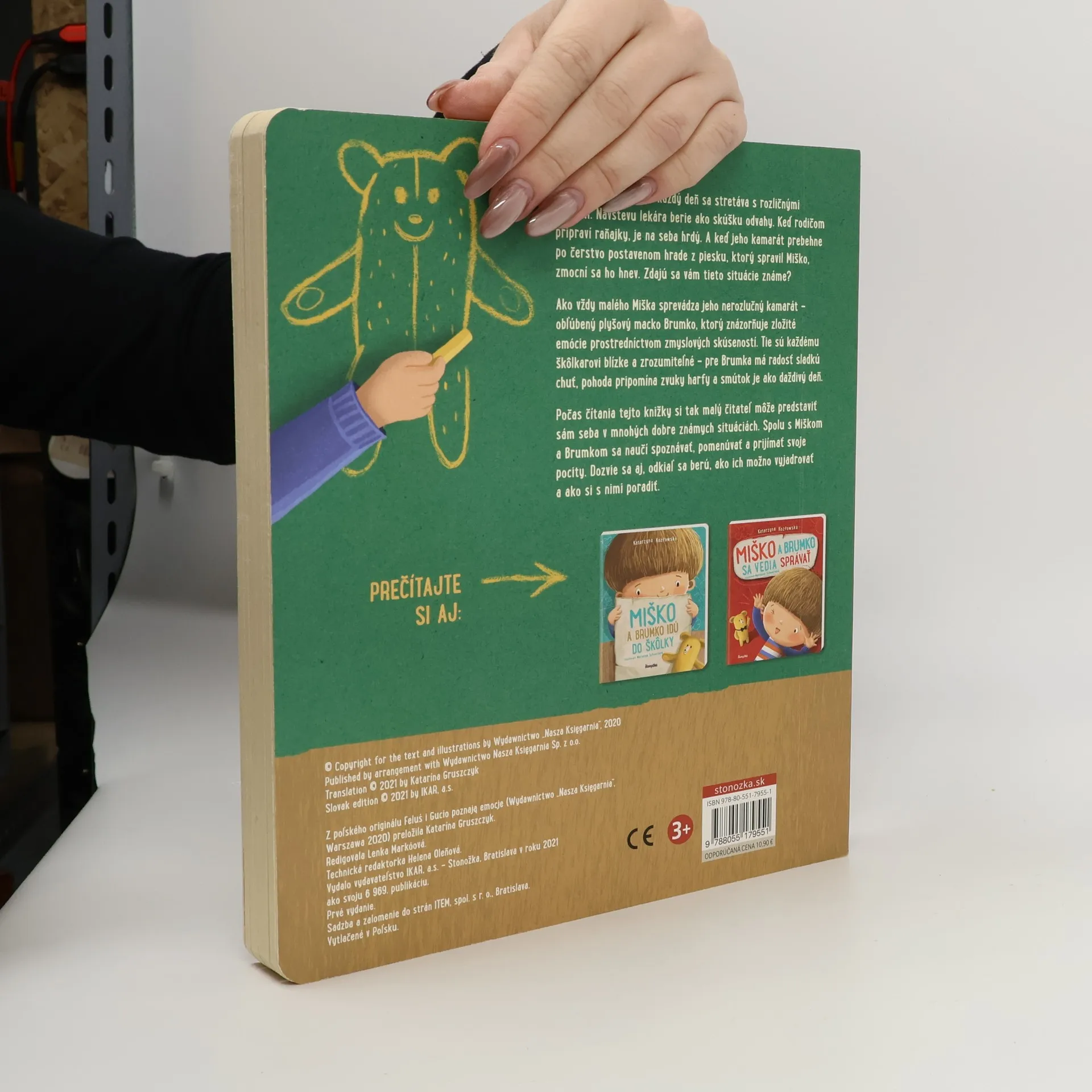 Predškolák Miško so svojím plyšovým kamarátom Brumkom pomáha deťom spoznať pocity. Každý deň v škôlke sa stretáva s rôznymi emóciami. Návšteva lekára je pre neho skúškou odvahy, hrdosť cíti, keď pripraví raňajky pre rodičov, a hnev, keď jeho kamarát zničí pieskový hrad, ktorý postavil. Tieto situácie sú deťom známe a blízke. Brumko, obľúbený plyšový macko, znázorňuje zložité emócie prostredníctvom zmyslových skúseností. Radosť má sladkú chuť, pohoda znie ako harfa a smútok pripomína daždivý deň. Pri čítaní tejto knižky si malý čitateľ môže predstaviť seba v mnohých známych situáciách a spolu s Miškom a Brumkom sa naučí rozpoznávať, pomenúvať a prijímať svoje pocity. Zisťuje, odkiaľ emócie prichádzajú, ako ich vyjadrovať a ako s nimi narábať. Kniha ponúka deťom cenné lekcie o emocionálnej inteligencii a pomáha im lepšie porozumieť svojim vnútorným pocitom.
