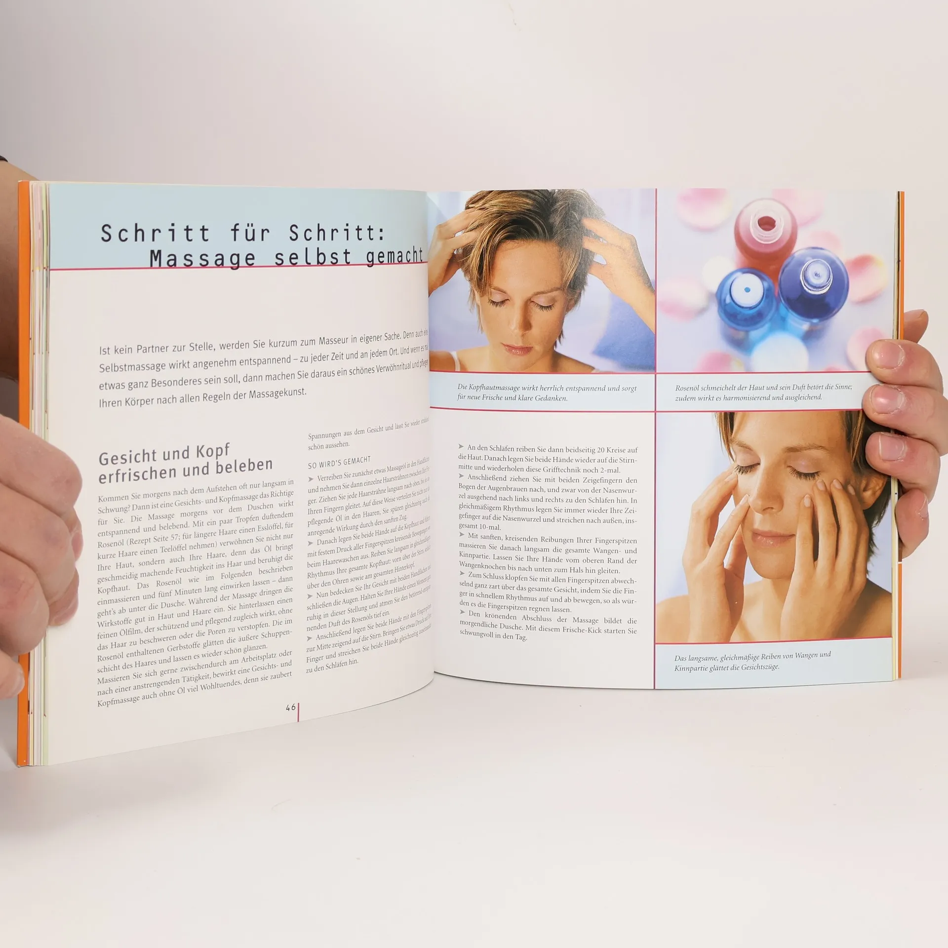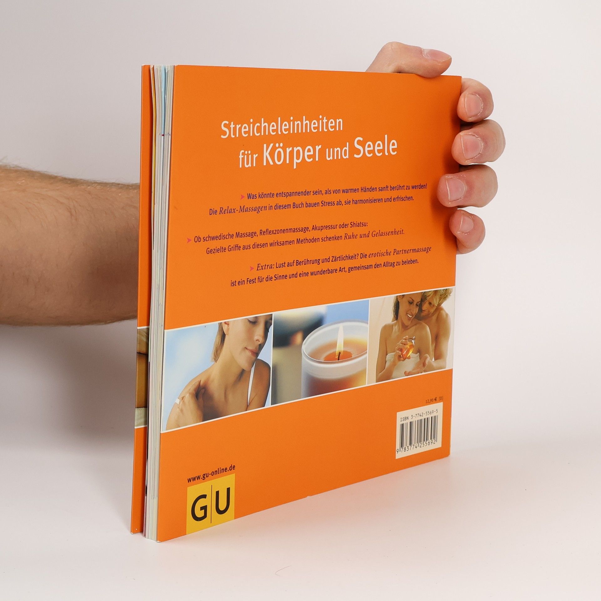 Von warmen, geschmeidigen Händen massiert werden - kaum etwas bewirkt ohne großen Aufwand eine so tiefe Entspannung! Denn die Haut, unser größtes Sinnesorgan, reagiert sensibel auf Streicheleinheiten, und davon profitieren Körper und Seele zugleich. Die Relax-Massagen in diesem Buch zeigen wirkungsvolle Handgriffe, um Stress wegzumassieren und neue Kräfte zu gewinnen. Sie sind teils allein, teils zu zweit anwendbar und basieren auf den wichtigsten Massagemethoden (schwedische und Reflexzonen-Massage, Akupressur, erotische Partnermassage u.a.)
