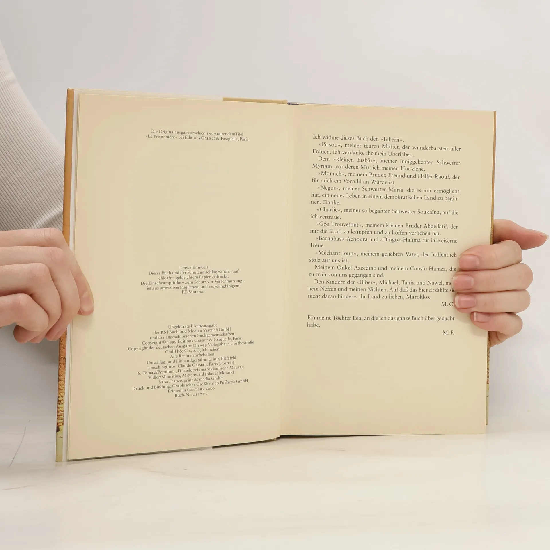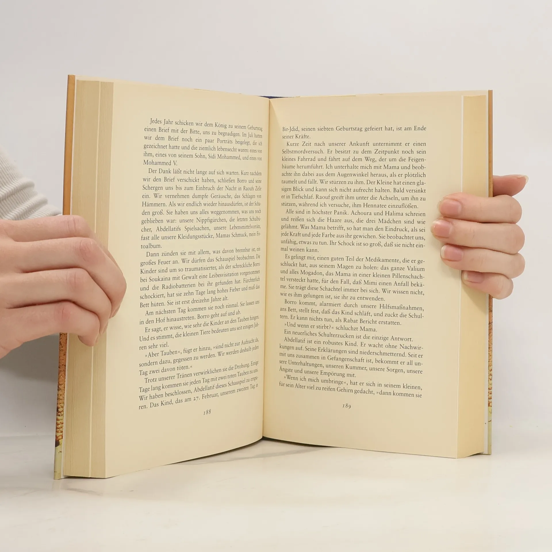 Die Autorin (Jg. 1953) wird im königlichen Harem Marokkos als Spielgefährtin für die Lieblingstochter Mohammeds V. erzogen. Sie lebt in grossem Luxus, bis ihr Vater 1972 nach einem Putschversuch erschossen und die Familie für 20 Jahre inhaftiert wird.