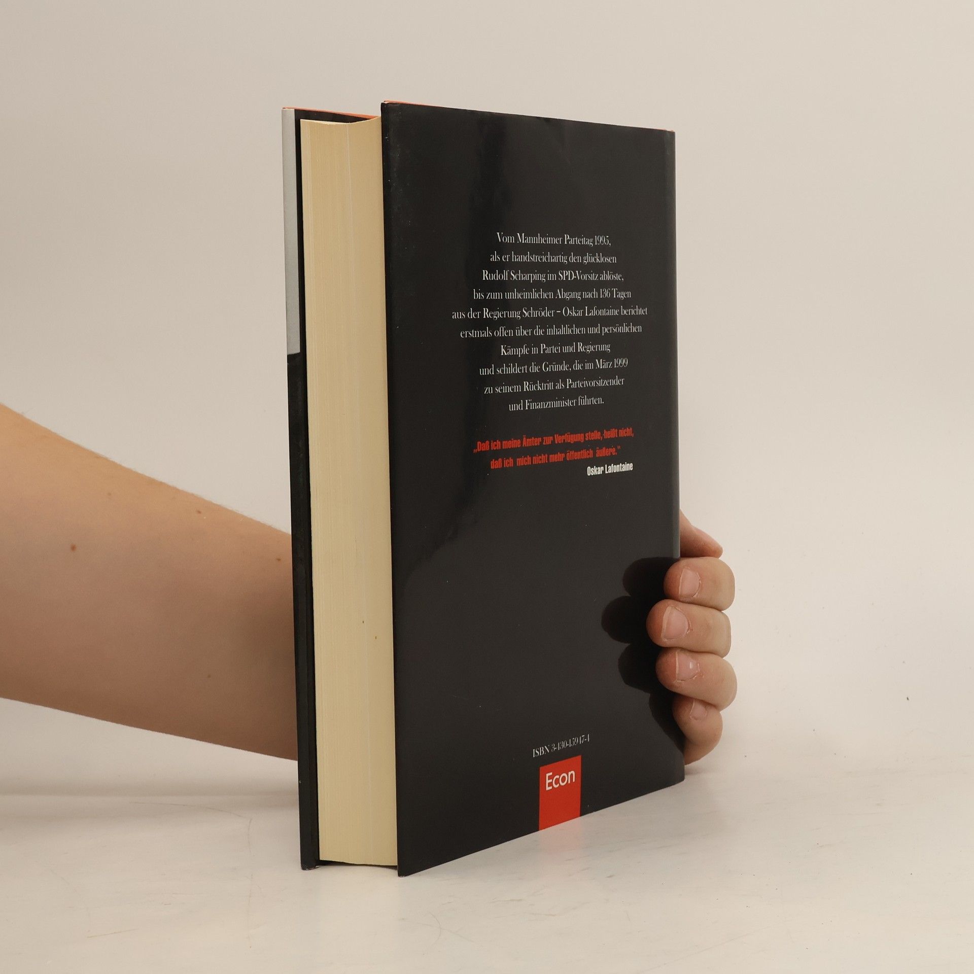 Vom Mannheimer Parteitag 1995, als er handstreichartig den glücklosen Rudolf Scharping im SPD-Vorsitz ablöste, bis zum unheimlichen Abgang nach 136 Tagen aus der Regierung Schröder - Oskar Lafontaine berichtet erstmals offen über die inhaltlichen und persönlichen Kämpfe in Partei und Regierung und schildert die Gründe, die im März 1999 zu seinem Rücktritt als Parteivorsitzender und Finanzminister führten.
