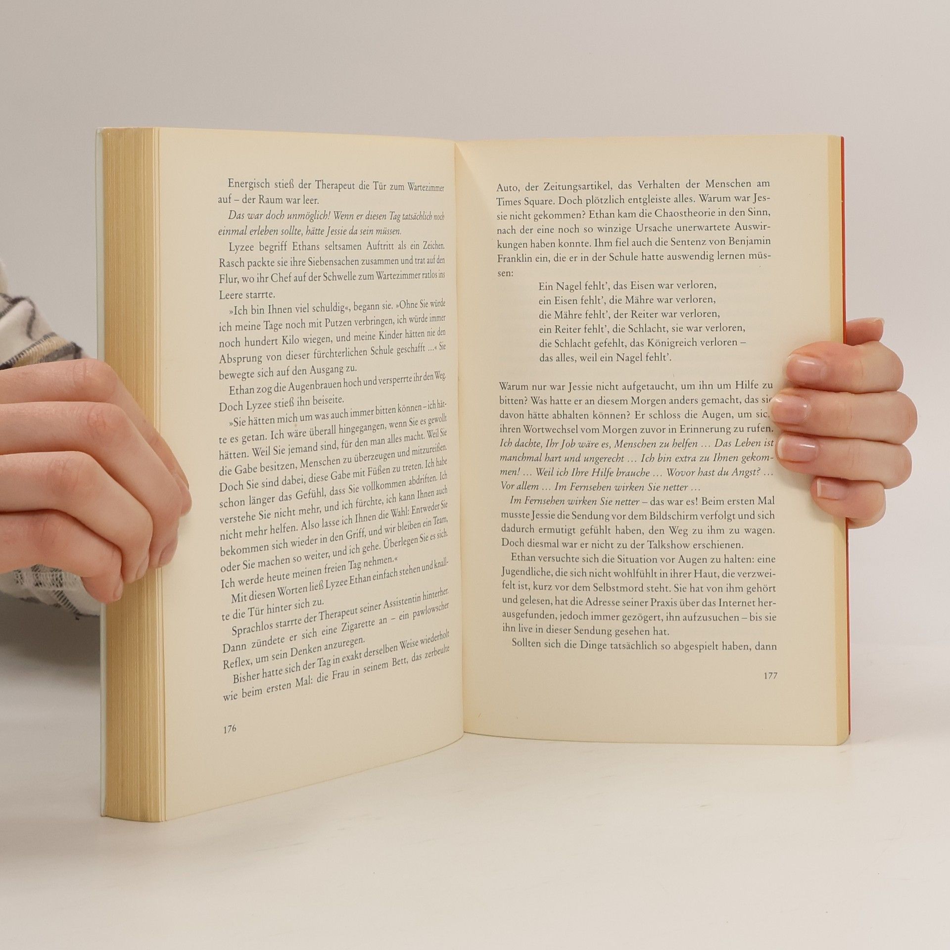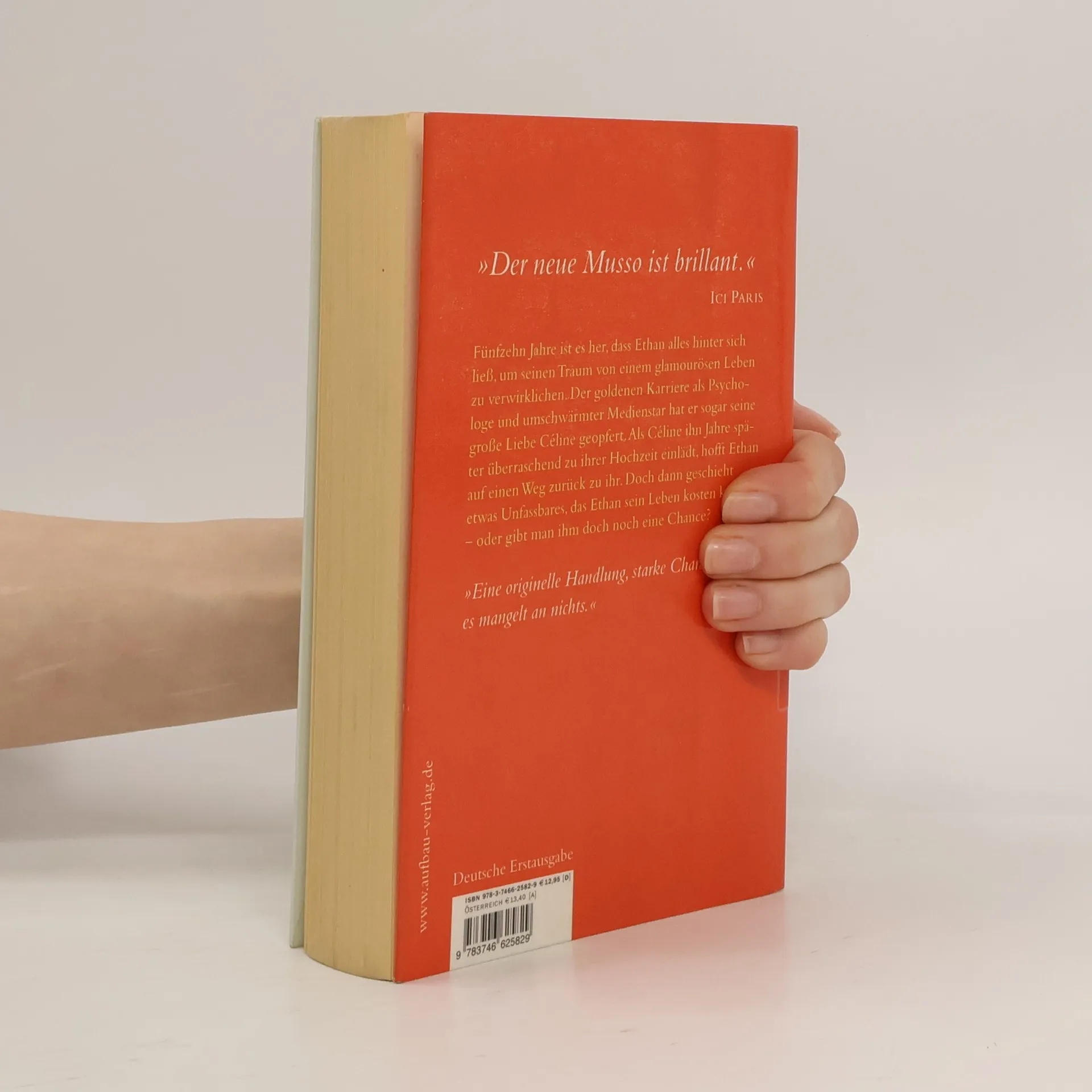 „Der neue Musso ist brillant.“ Ici Paris Fünfzehn Jahre ist es her, dass Ethan alles hinter sich ließ, um seinen Traum von einem glamourösen Leben zu verwirklichen. Der goldenen Karriere als Psychologe und umschwärmter Medienstar hat er sogar seine große Liebe Céline geopfert. Als Céline ihn Jahre später überraschend zu ihrer Hochzeit einlädt, hofft Ethan auf einen Weg zurück zu ihr. Doch dann geschieht etwas Unfassbares, das Ethan sein Leben kosten könnte - oder gibt man ihm doch noch eine Chance? New York, 2007. Fünfzehn Jahre ist es her, dass Ethan Heimat und Freunde hinter sich ließ, um seinen Traum von einem glamourösen Leben zu verwirklichen. Tatsächlich gelingt ihm in Manhattan eine steile Karriere als Psychologe und umschwärmter Medienstar. Er schreibt Bestseller zum Thema Selbstvertrauen und Lebensglück - er selbst aber fühlt sich einsam und leer. Die Frauen liegen dem attraktiven Mittdreißiger zu Füßen, doch er kann seine große Liebe Céline nicht vergessen, die er Jahre zuvor auf dem Weg zum Erfolg verlassen hat. Unverhofft lädt Céline Ethan zu ihrer Hochzeit am Halloweenabend ein. Ein schicksalhafter Tag, den der Psychologe drei Mal in Folge erleben muss - und jedes Mal wurden seine Aussichten geringer, doch noch seine inneren Dämonen zu bezwingen und sich und denen, die er liebt, die Chance auf ein neues Glück zu ermöglichen. „Eine originelle Handlung, starke Charaktere - es mangelt an nichts.“ Metró