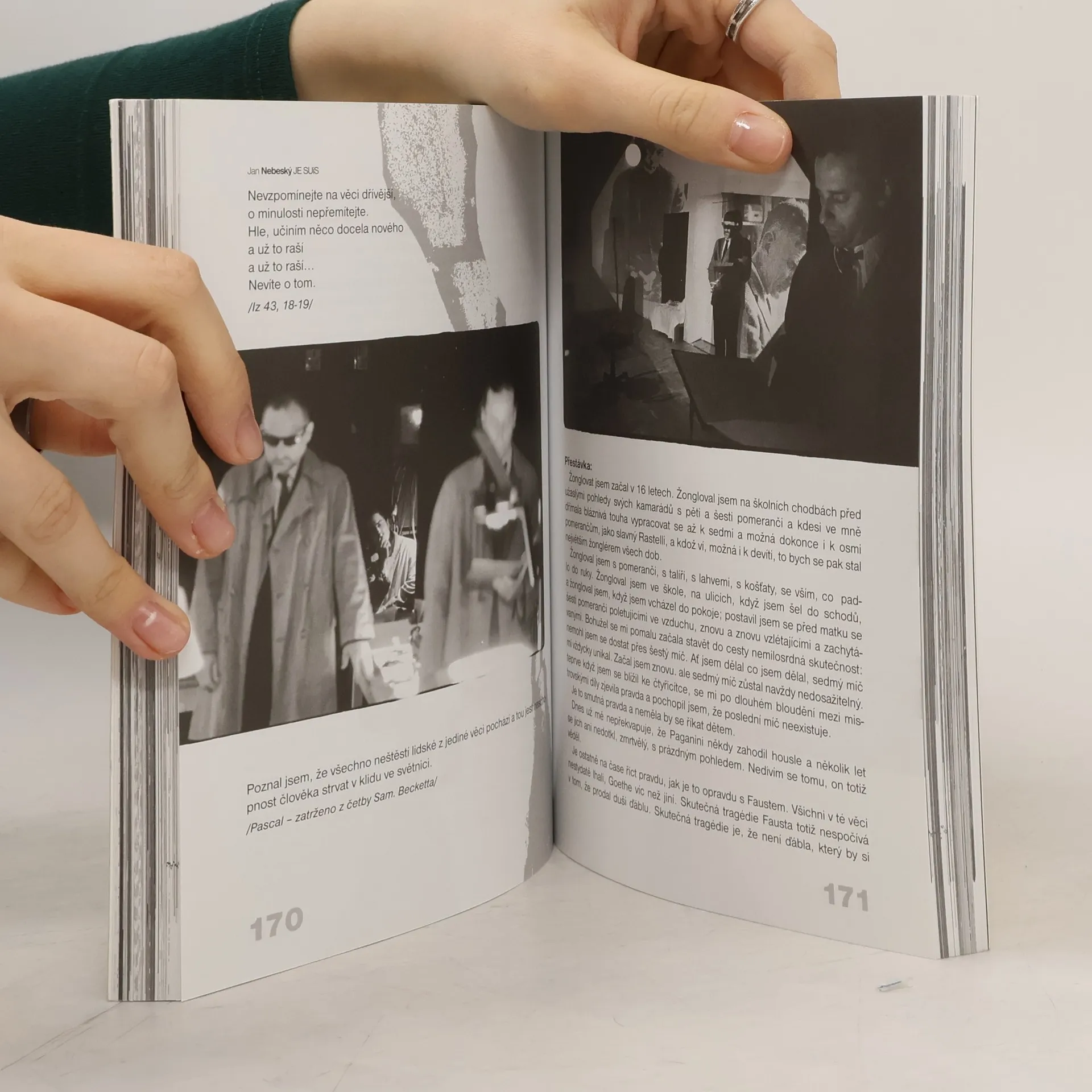 Portrét divadelníka, který spolu s Petrem Léblem, J. A. Pitínským a Vladimírem Morávkem profiloval náš polistopadový divadelní vývoj a přispěl k prosazení postmoderních tendencí a obrazivého divadla. Základem publikace jsou fotografické seriály Bohdana Holomíčka, doplněné textem Egona L. Tobiáše Eine magnet, soupisem inscenací Jana Nebeského a výběrem z bibliografie. Obálka a originální grafická úprava je dílem Egona L. Tobiáše.