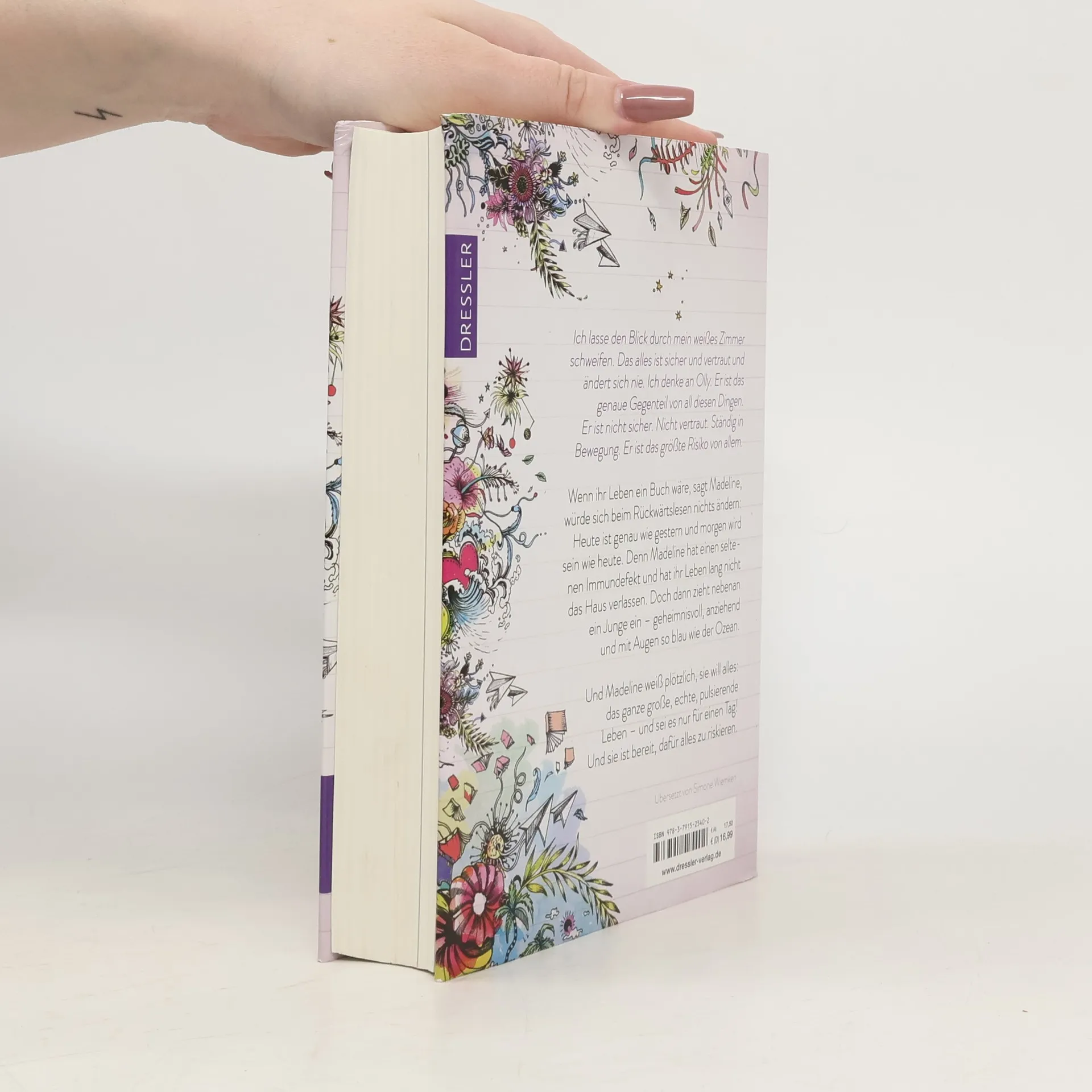 Am Anfang war ein Traum. Und dann war Leben! Wenn ihr Leben ein Buch wäre, sagt Madeline, würde sich beim Rückwärtslesen nichts ändern: Heute ist genau wie gestern und morgen wird sein wie heute. Denn Madeline hat einen seltenen Immundefekt und ihr Leben lang nicht das Haus verlassen. Doch dann zieht nebenan der gut aussehende Olly ein - und Madeline weiß, sie will alles, das ganze große, echte, lebendige Leben! Und sie ist bereit, dafür alles zu riskieren. So hat man die Liebe noch nie gelesen! Das neue Lieblingsbuch für Töchter und ihre Mütter: Eine außergewöhnlich berührende Liebesgeschichte für Fans von Jojo Moyes und John Green mit besonderen Illustrationen, Skizzen, Notizen und E-Mails. Empfohlen von Stiftung Lesen.
