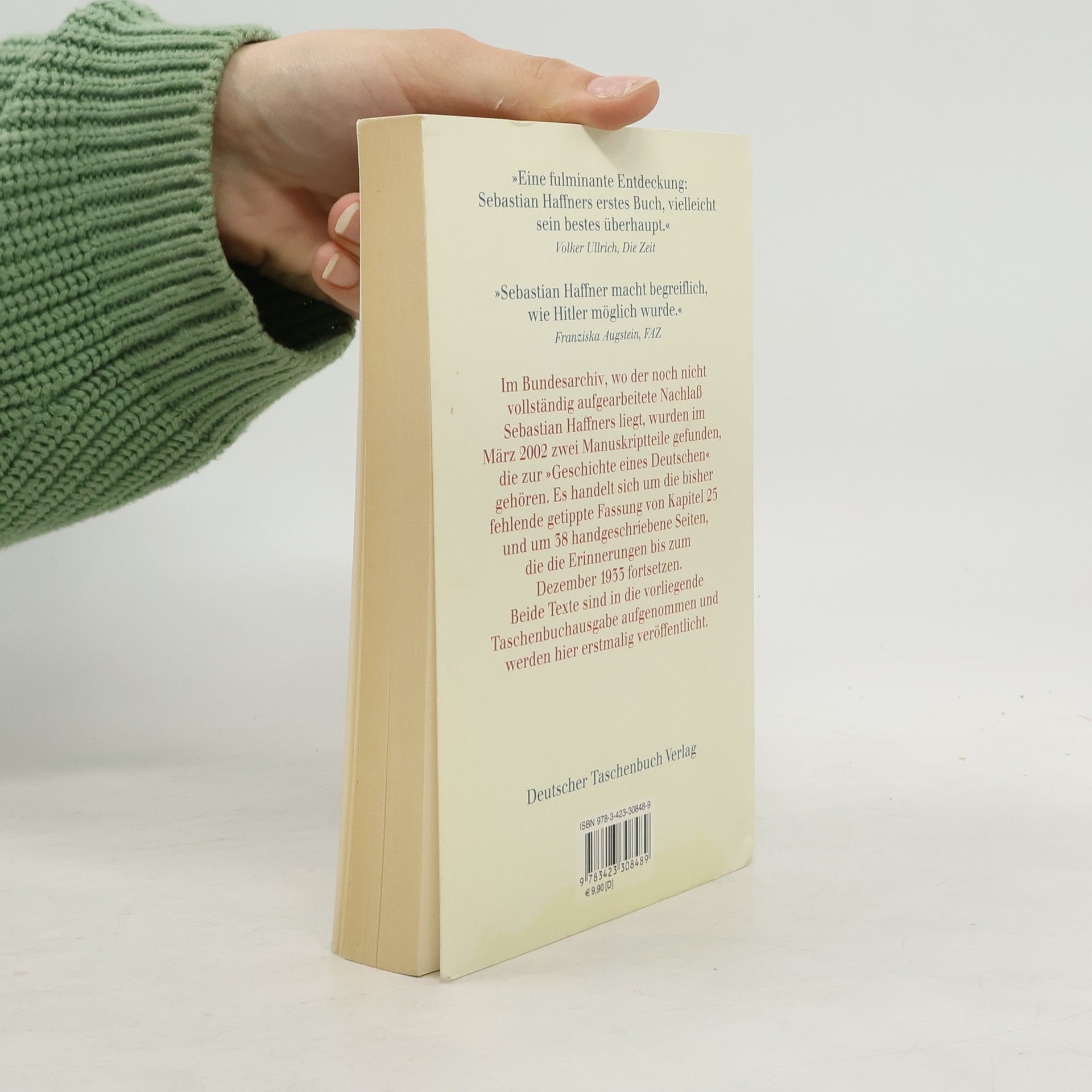 Dieser autobiografische Text. ist nicht nur Haffners persönlichstes, sondern auch sein bestes Buch. Volker Ullrich, Die Zeit Als Kind und junger Mann erlebte Sebastian Haffner den Ersten Weltkrieg, die galoppierende Inflation 1923, die Radikalisierung der politischen Parteien, den unaufhaltsamen Aufstieg der Nationalsozialisten. Ohne politisch oder rassisch verfolgt zu sein, emigrierte er 1938. Aus dem Nachlaß sind nun die Erinnerungen seiner ersten drei Lebensjahrzehnte veröffentlicht, 1939 in England zu Papier gebracht. Aus der Distanz des Exils und zugleich unter dem Eindruck des unmittelbar Erlebten blickt der junge Haffner enorm hellsichtig und zugleich nüchtern auf die sich anbahnende Katastrophe. Ohne Eitelkeit, doch mit feiner Ironie und einem gelegentlichen Aufflackern von Zorn beschreibt er die Jahre zwischen 1914 und 1933, spiegelt das Politische im Individuellen, benennt Gründe für seine persönliche Entwicklung und die seines Volkes. Wer das Verhängnis sehen wollte, erkannte es schon vor 1933! Für die Taschenbuchausgabe um zwei neu aufgefundene Manuskriptteile erweiterte Ausgabe.