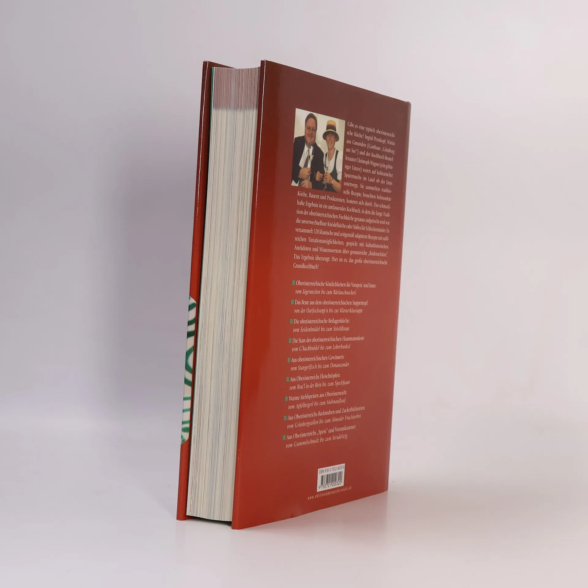 „Wenn man keinen Knödel ißt“, so ein oberösterreichisches Sprichwort, „so hat man den ganzen Tag Hunger.“ Der Knödel ist ein ideales Symbol der Küche des Landes ob der Enns und dient als kulinarische Trademark. Alte oberösterreichische Kochbücher sind wahre Fundgruben für viele vergessene Knödelrezepte wie Brandknödel, braune Grießknödel, gebackene Reisknödel und viele andere, die in dieser Rezeptsammlung zu finden sind. Zum Knödel gehört in Oberösterreich selbstverständlich das „Bratl“ und ein warmer, mit Speck „abgeschmalzter“ Krautsalat. Dennoch wäre es ein Fehler, die oberösterreichische Küche nur auf Bratl und Knödel zu reduzieren. Die Tische in den vier oberösterreichischen Vierteln sind reich gedeckt mit Köstlichkeiten aus den süßen Gewässern, Wäldern, Spargelfeldern und Obstbäumen, sowie aus Konditoreien, Biozuchten und Kleinbrauereien. Die Qualität der landwirtschaftlichen Produkte ist heute so hoch und vielfältig wie nie zuvor. Ingrid Pernkopf, bekannt aus der TV-Serie „Schlosshotel Orth“, hat in ihrem umfangreichen Archiv recherchiert und zusammen mit Bestsellerautor Christoph Wagner das umfassendste Standardwerk der oberösterreichischen Küche veröffentlicht, das jemals zwischen Inn-, Mühl-, Traun- und Hausruckviertel erschienen ist.