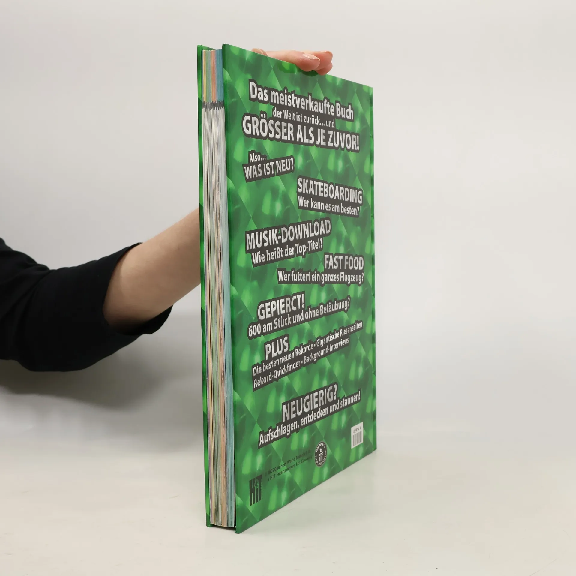 §Skateboarding! Wer kann es am besten?§Musik-Download! Wie heißt der Top-Titel?§Fast Food! Wer futtert ein ganzes Flugzeug?§Gepierct! 600 am Stück und ohne Betäubung?§Plus: Die besten neuen Rekorde. Gigantische Riesenseiten. Rekord-Quickfinder. Background-Interviews.§Neugierig? Aufschlagen, entdecken und staunen!