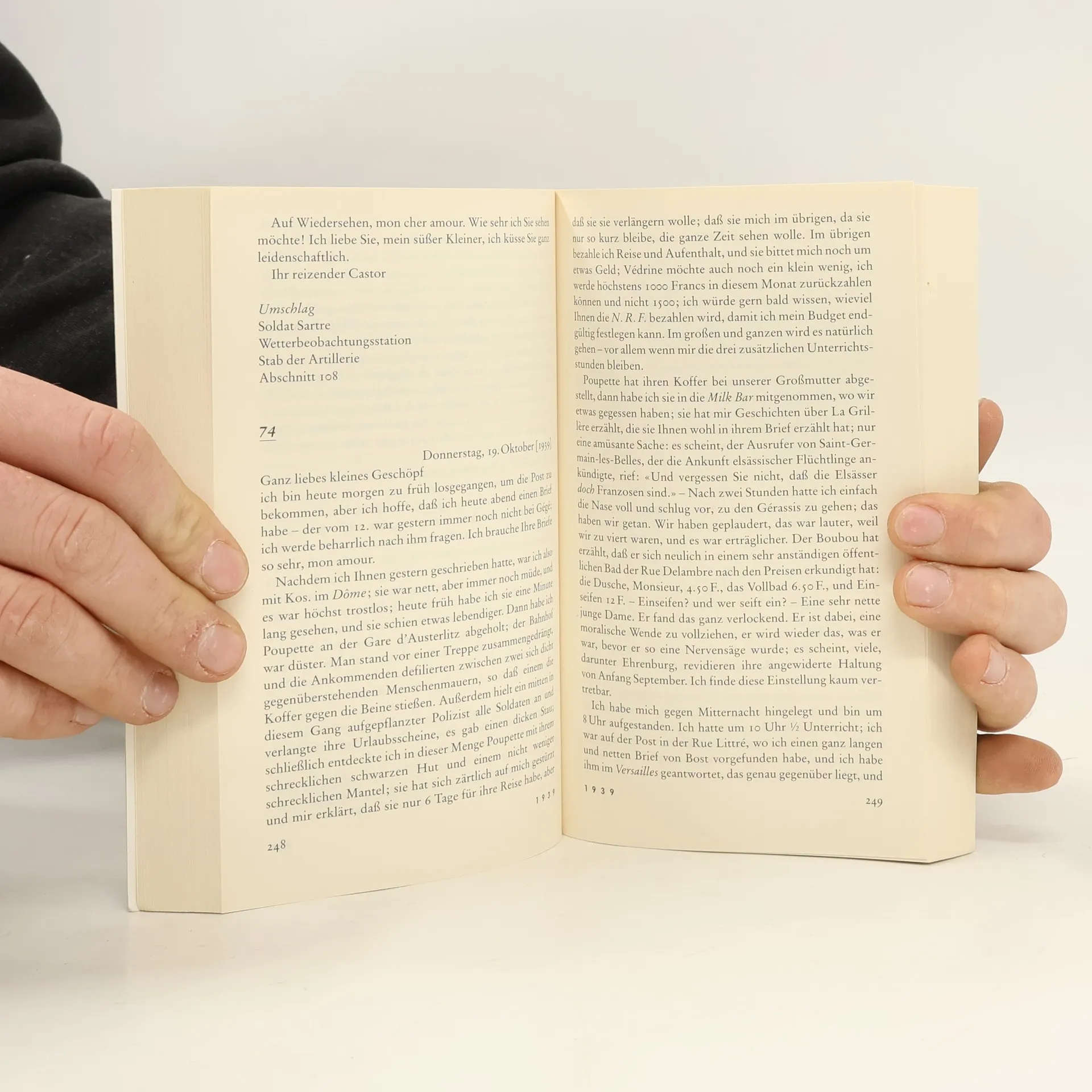 Dieser erste Band, der die Briefe von 1930 bis 1939 enthält, schildert vor allem die Trennung der beiden während des Krieges. Lektüre, Straßenerlebnisse, Spaziergänge, Kaffeehausgespräche, Liebesbeziehungen, Stimmungen - die Briefe sind ein genauer Führer durch den Pariser Alltag während des Krieges.