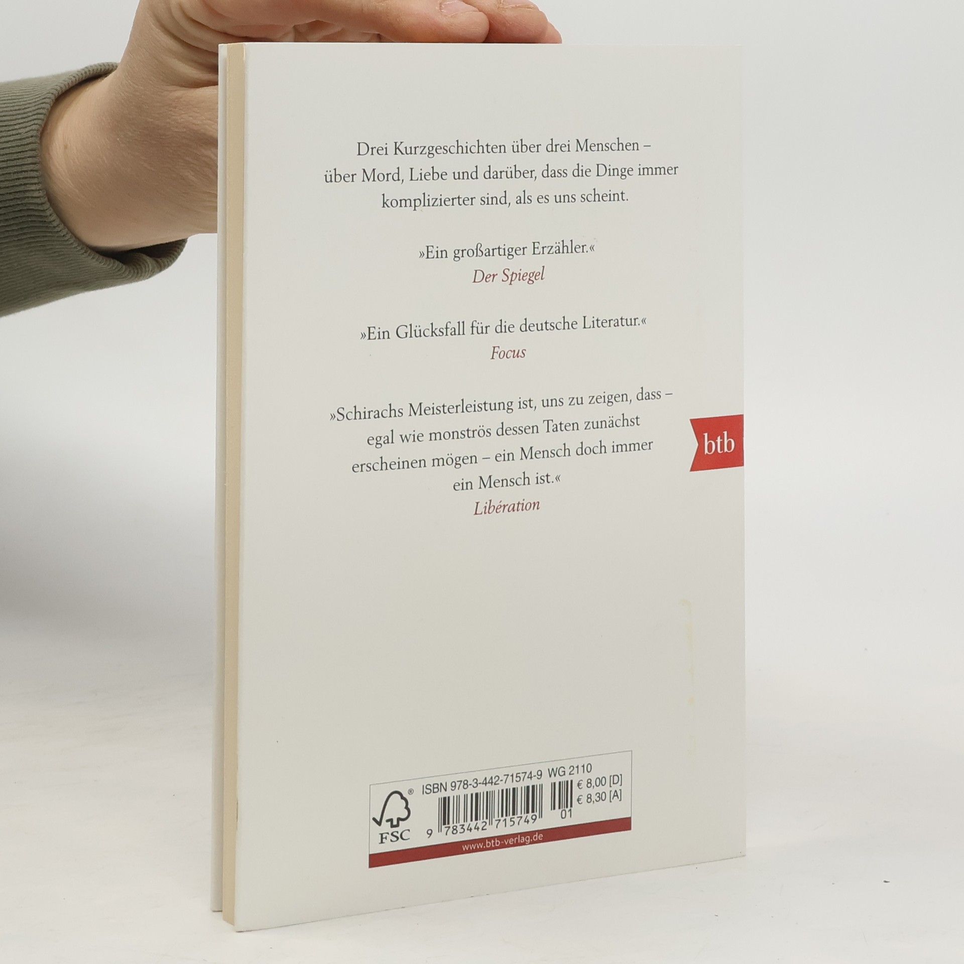 Ein Berliner Bäcker macht die beste Torte seines Lebens. Carl Tohrberg feiert Weihnachten. Der pensionierte Richter Seybold lernt die andere Seite des Gesetzes kennen. Drei meisterhaft erzählte Geschichten, in denen Ferdinand von Schirach von den Abgründen schreibt, die sich hinter scheinbar ganz alltäglichen Dingen auftun. Erneut stellt von Schirach in diesen Stories sein Ausnahmetalent als Erzähler unter Beweis, über das »Die Welt« schrieb: »Beim Lesen dieser Geschichten hat man Glückserlebnisse wie sonst nur bei der Lektüre von Fitzgerald oder Capote, da sitzt jedes Wort, da ist alles an seinem Platz, Poesie durch Klarheit.«