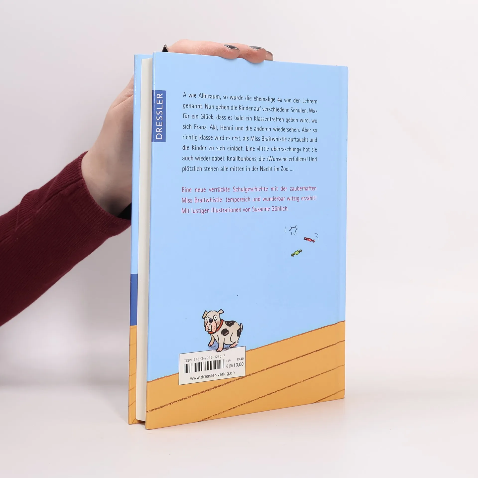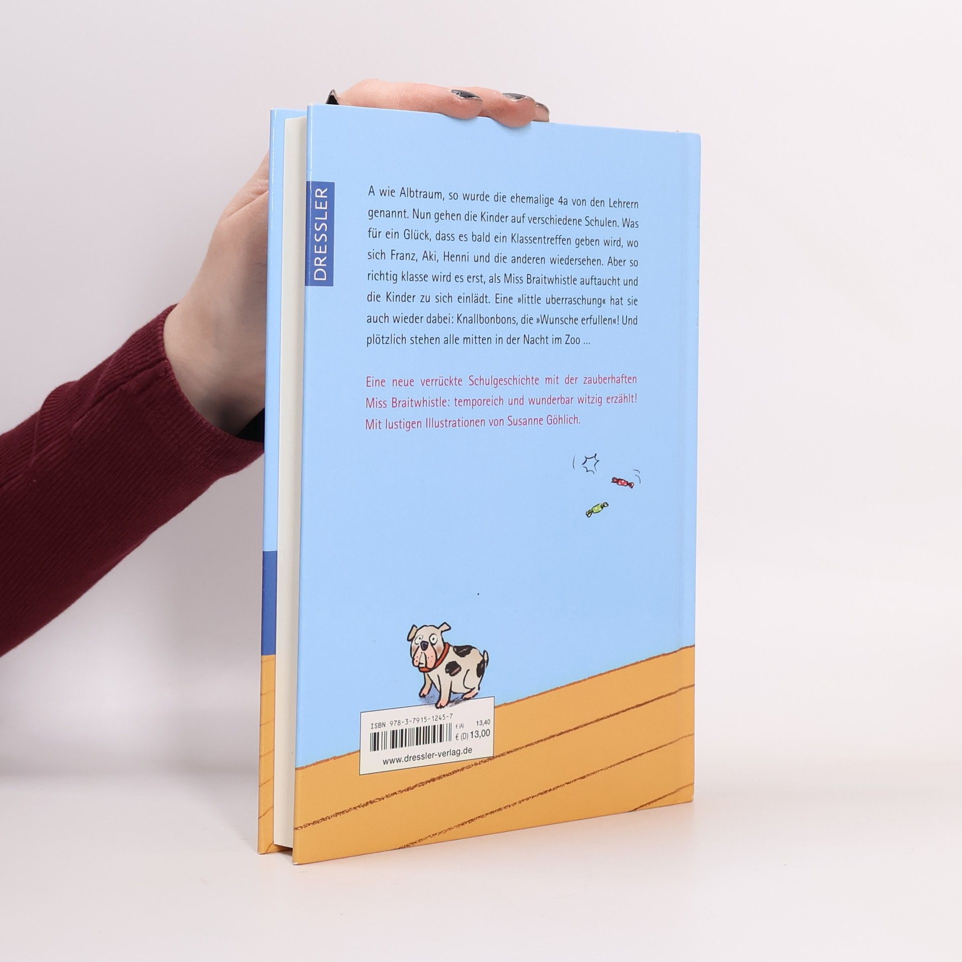 YIPPIE! Miss Braitwhistle ist wieder da! A wie Albtraum, so wurde die ehemalige 4a genannt. Doch nun gehen alle auf verschiedene Schulen. Was für ein Glück, dass ein Klassentreffen ansteht, wo sich Franz, Aki, Pauline und die anderen endlich wiedersehen. Aber so richtig klasse wird es erst, als Miss Braitwhistle, die zauberhafte Ex-Lehrerin, auftaucht und die Kinder zu sich einlädt. Eine „littleuberraschung“ hat sie auch wieder parat: Knallbonbons, die „Wunsche erfullen“! Und plötzlich stehen alle mitten in der Nacht im Zoo. Schulalltag - das Lieblingsthema von Sabine Ludwig und ihren kleinen Lesern (und großen Vorlesern): Ein wunderbares Wiedersehen im vierten Band der Bestseller-Serie, unverwechselbar sprachwitzig und erfrischend erzählt, mit Illustrationen von Susanne Göhlich.