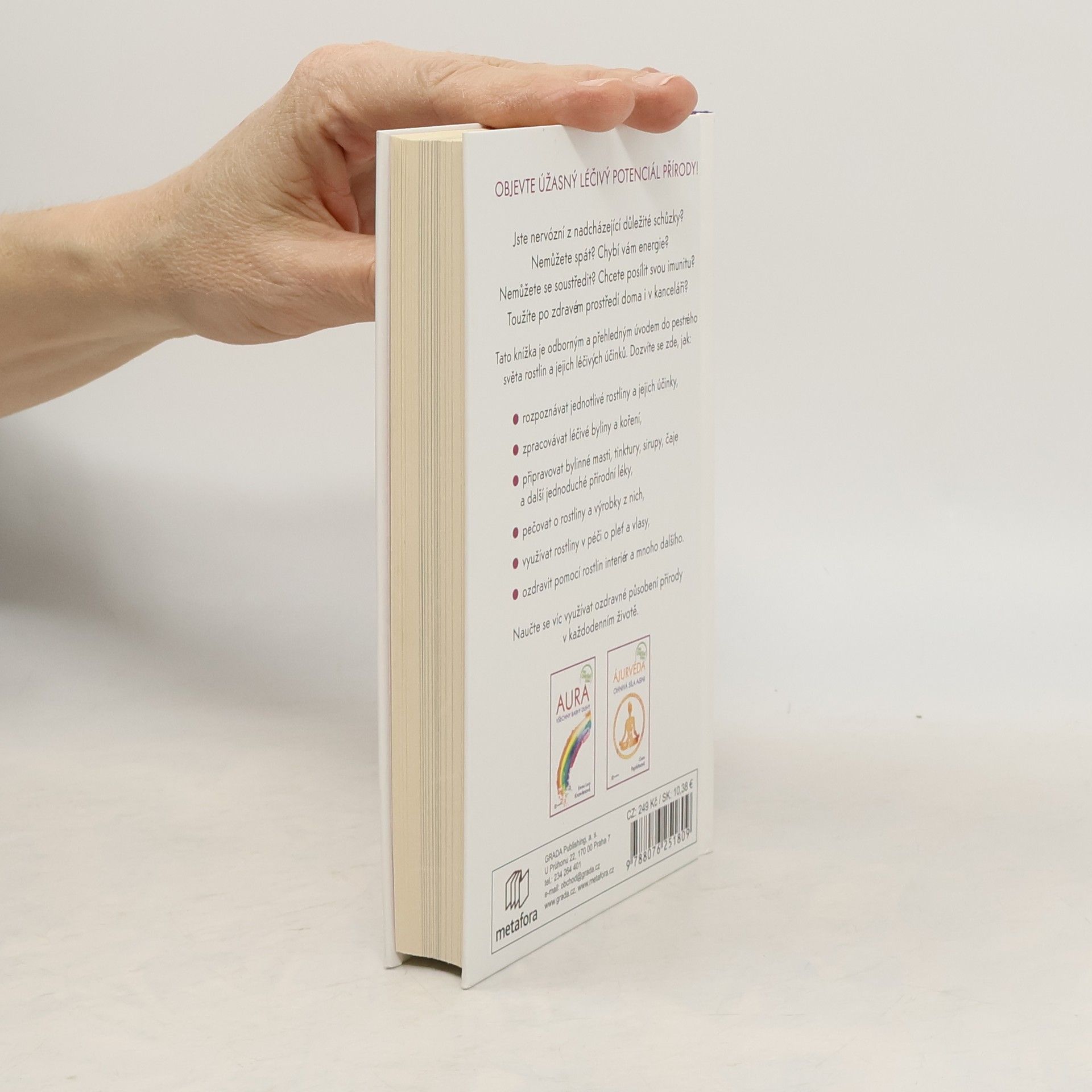 Jste nervózní z nadcházející důležité schůzky? Nemůžete spát? Chybí vám energie? Nemůžete se soustředit? Chcete posílit svou imunitu? Toužíte po zdravém prostředí doma i v kanceláři? Tato knížka je odborným a přehledným úvodem do pestrého světa rostlin a jejich léčivých účinků. Dozvíte se zde, jak: ● rozpoznávat jednotlivé rostliny a jejich účinky, ● zpracovávat léčivé byliny a koření, ● připravovat bylinné masti, tinktury, sirupy, čaje a další jednoduché přírodní léky, ● pečovat o rostliny a výrobky z nich, ● využívat rostliny v péči o pleť a vlasy, ● ozdravit pomocí rostlin interiér a mnoho dalšího. Naučte se víc využívat ozdravné působení přírody v každodenním životě.