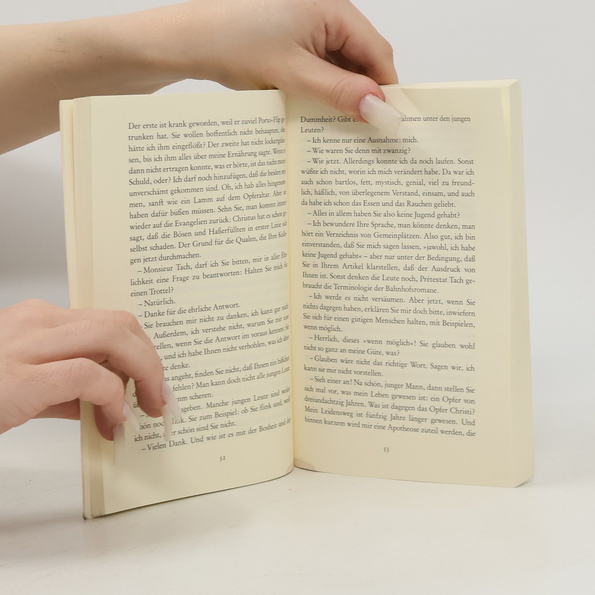 Pretextat Tach, dreiundachtzigjährig und Nobelpreisträger für Literatur, hat laut Aussage der Ärzte nur noch zwei Monate zu leben. Als dies bekannt wird, bemühen sich Medienleute aus der ganzen Welt um ein Interview. Fünf Journalisten dürfen bei ihm vorsprechen - und kommen selbst in arge Bedrängnis. Doch dann kommt eine, die dem alten Zyniker gewachsen ist.