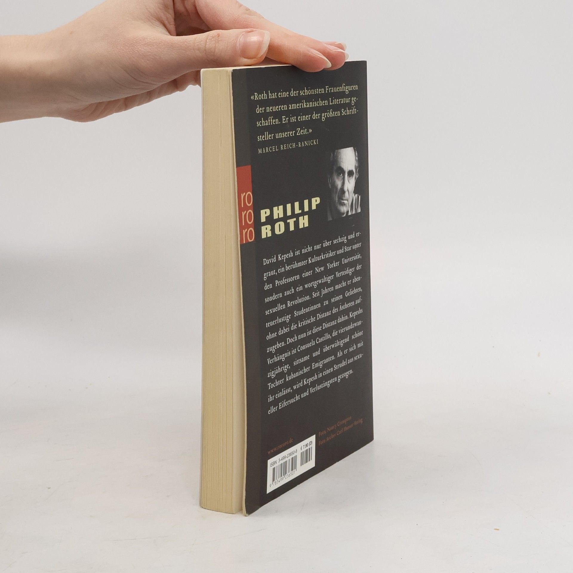 «Roth hat eine der schönsten Frauenfiguren der neueren amerikanischen Literatur geschaffen. ... einer der größten Schriftsteller unserer Zeit.» MARCEL REICH-RANICKI David Kepesh ist nicht nur über sechzig und ergraut, ein berühmter Kulturkritiker und Star unter den Professoren einer New Yorker Universität, sondern auch ein wortgewaltiger Verteidiger der sexuellen Revolution. Seit Jahren macht er abenteuerlustige Studentinnen zu seinen Geliebten, ohne dabei die kritische Distanz des Ästheten aufzugeben. Doch nun ist diese Distanz dahin. Kepeshs Verhängnis ist Consuela Castillo, die vierundzwanzigjährige, sittsame und überwältigend schöne Tochter kubanischer Emigranten. Als er sich mit ihr einlässt, wird Kepesh in einen Strudel aus sexueller Eifersucht und Verlustängsten gezogen.