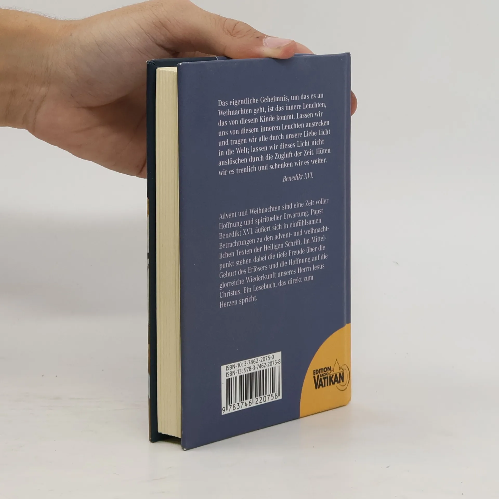 Advent und Weihnachten sind eine Zeit tiefer religiöser Atmosphäre, eine Zeit voller Hoffnung und spiritueller Erwartung. Papst Benedikt XVI. äußert sich in einfühlsamen Betrachtungen zu den advent- und weihnachtlichen Texten der Heiligen Schrift. Im Mittelpunkt stehen dabei die tiefe Freude Über die Geburt des Erlösers und die Hoffnung auf die glorreiche Wiederkunft unseres Herrn Jesus Christus. Ein Lesebuch, das direkt zu Herz und Seele spricht.