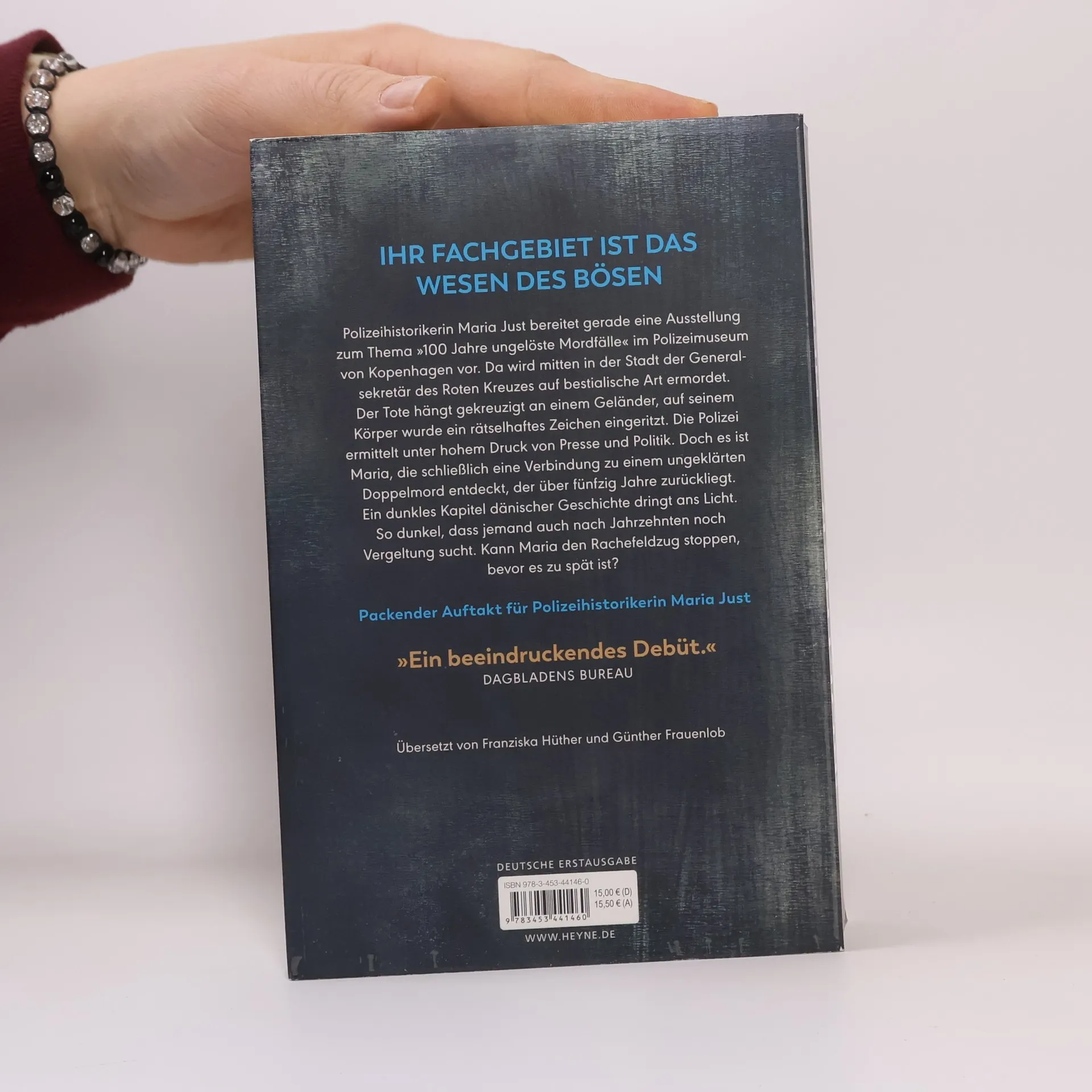 Wenn die Verbrechen der Vergangenheit ihre Schatten in die Gegenwart werfen, ist Cold-Case-Expertin Maria Just gefragt Polizeihistorikerin Maria Just bereitet gerade eine Ausstellung zum Thema »100 Jahre ungelöste Mordfälle« im Polizeimuseum von Kopenhagen vor. Da wird mitten in der Stadt der Generalsekretär des Roten Kreuzes auf bestialische Art ermordet. Der Tote hängt gekreuzigt an einem Geländer, auf seinem Körper wurde ein rätselhaftes Zeichen eingeritzt. Die Polizei ermittelt unter hohem Druck von Presse und Politik. Doch es ist Maria, die schließlich eine Verbindung zu einem ungeklärten Doppelmord entdeckt, der über fünfzig Jahre zurückliegt. Ein dunkles Kapitel dänischer Geschichte dringt ans Licht. So dunkel, dass jemand auch nach Jahrzehnten noch Vergeltung sucht. Kann Maria den Rachefeldzug stoppen, bevor es zu spät ist?