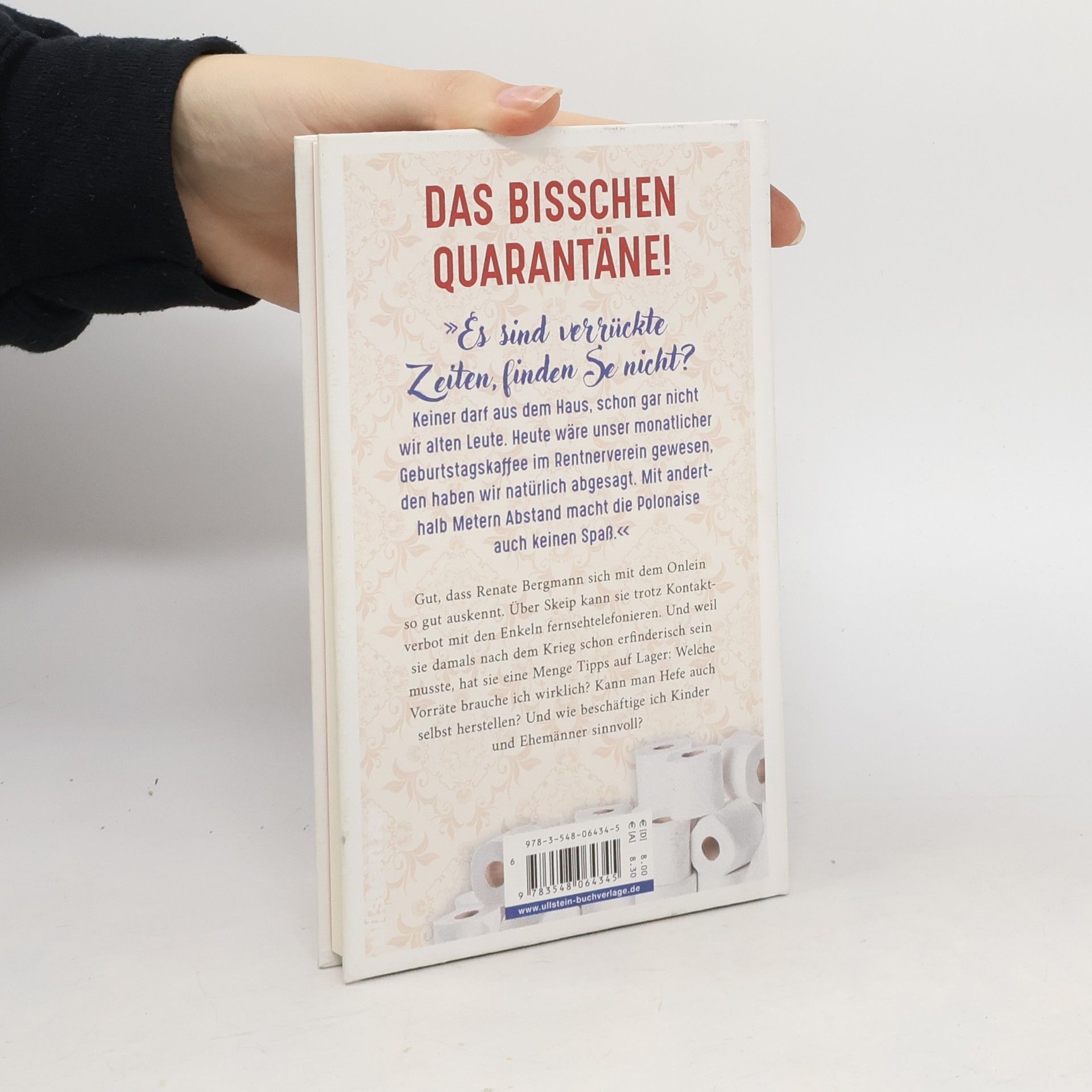 Das bisschen Quarantäne! Hier schreibt Renate Bergmann, guten Morgen! Das sind verrückte Zeiten, finden Se nicht? Keiner darf aus dem Haus, schon gar nicht wir alten Leute. Heute wäre unser monatlicher Geburtstagskaffee im Rentnerverein gewesen, den haben wir natürlich abgesagt. Mit anderthalb Metern Abstand versteht eh keiner was beim Unterhalten, und die Polonaise macht so auch keinen Spaß. Aber mal ehrlich, man hat zu Hause doch immer was zu tun und man kann es sich ja schön machen. Früher nach dem Krieg mussten wir ja auch erfinderisch sein, und damals hatten wir noch kein Skeip für die Seniorengymnastik. Da fällt mir ein, ich muss noch die Teppichfransen kämmen. Und dann erzähle ich Ihnen, wie ich, Ilse und Kurt mit der Krise umgehen. Da können Se noch was lernen! Ihre Renate Bergmann