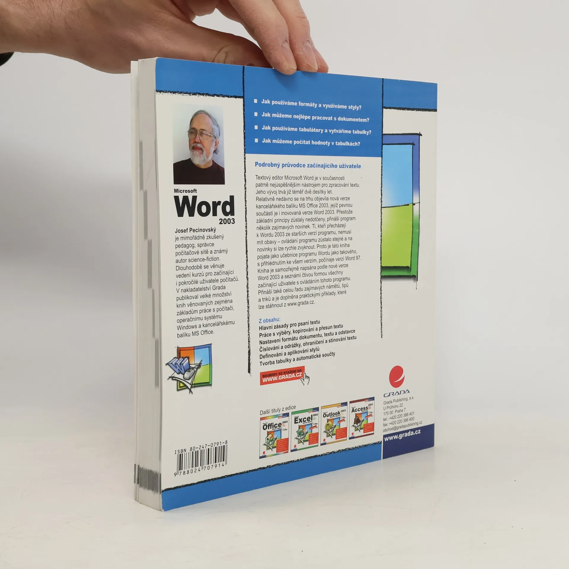 Kniha seznámí čtivou formou všechny začínající uživatele s ovládáním programu Word 2003 z nového kancelářského balíku MS Office 2003. Autor klade hlavní důraz na vysvětlení základních principů práce s programem, přestože novinky neopomíjí. Příručka je pojata spíše jako učebnice Wordu, upozorňuje totiž i na konkrétní rozdíly mezi Wordem 2003 a jeho staršími verzemi, počínaje verzí 97. Přináší celou řadu zajímavých námětů, tipů a triků a je doplněna praktickými příklady, které lze stáhnout z www.grada.cz. V knize jsou uvedeny také anglické termíny příkazů a nabídek, aby s ní mohli pracovat i uživatelé nelokalizovaných verzí programu.