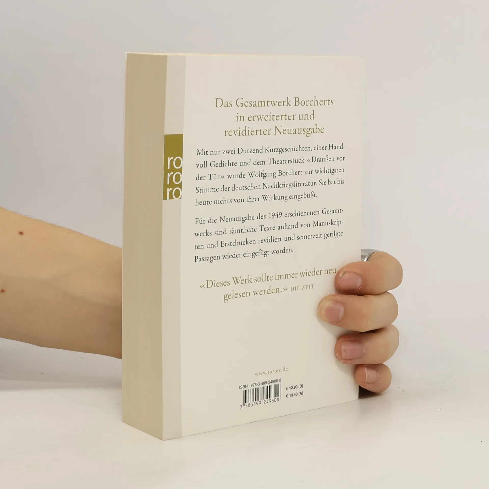 Das Gesamtwerk Borcherts in erweiterter und revidierter Neuausgabe Mit nur zwei Dutzend Kurzgeschichten, einer Handvoll Gedichte und dem Theaterstück „Draußen vor der Tür“ wurde Wolfgang Borchert zur wichtigsten Stimme der deutschen Nachkriegsliteratur. Sie hat bis heute nichts von ihrer Wirkung eingebüßt. Für die Neuausgabe des 1949 erschienenen Gesamtwerks sind sämtliche Texte anhand von Manuskripten und Erstdrucken revidiert und seinerzeit getilgte Passagen wieder eingefügt worden. „Dieses Werk sollte immer wieder neu gelesen werden.“ (Die Zeit)