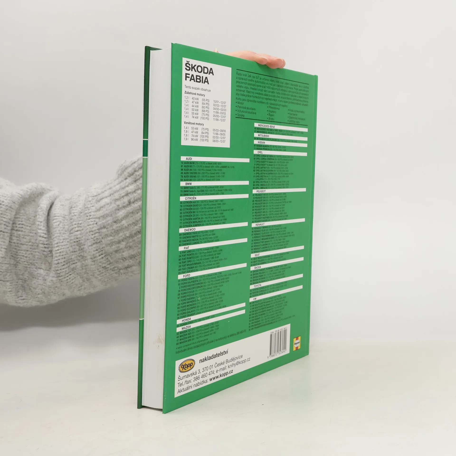 Příručka popisuje údržbu a opravy automobilů Škoda Fabia a je vhodná pro profesionály i amatéry. Publikace obsahuje přibližně 1400 obrázků, 50 tabulek a elektrických schémat.