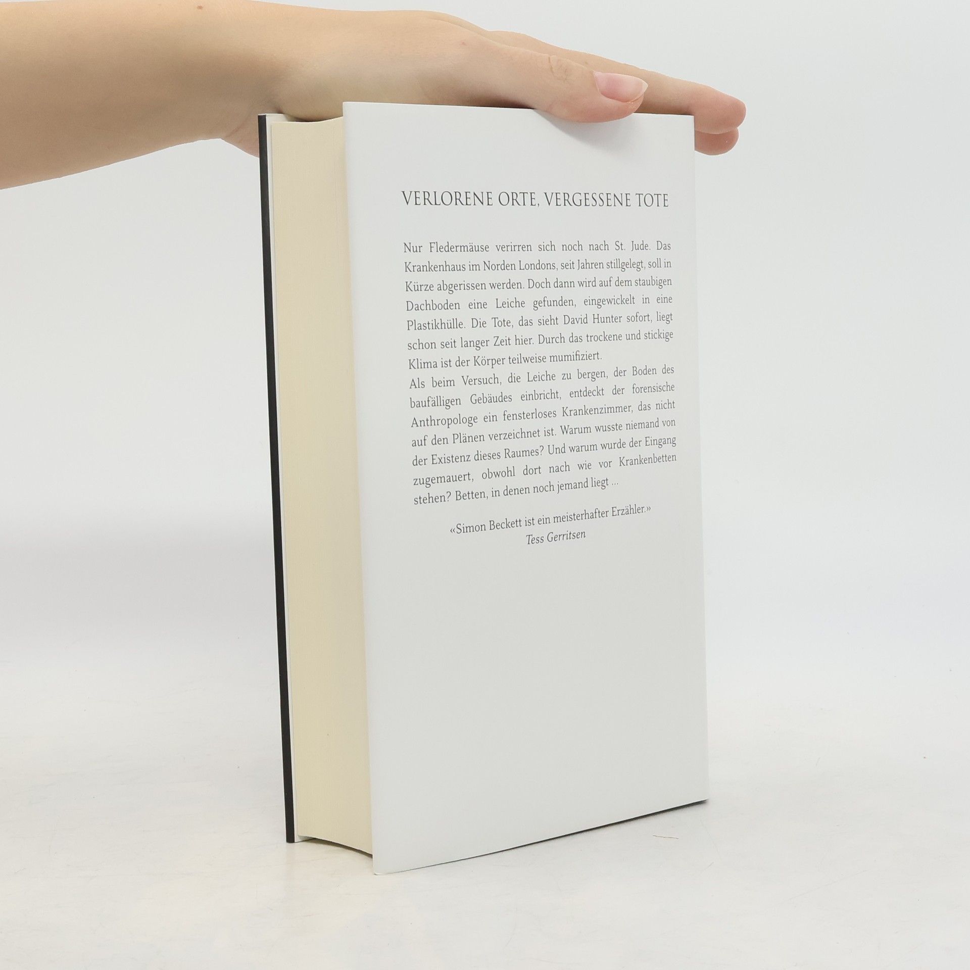 Im 6. Teil der Bestsellerreihe um David Hunter ermittelt der forensische Anthropologe in einem verlassenen Krankenhaus mit schreckensreicher Vergangenheit. Nur Fledermäuse verirren sich noch nach St. Jude. Das Krankenhaus im Norden Londons, seit Jahren stillgelegt, soll in Kürze abgerissen werden. Doch dann wird auf dem staubigen Dachboden eine Leiche gefunden, eingewickelt in eine Plastikhülle. Die Tote, das sieht David Hunter sofort, liegt schon seit langer Zeit hier. Durch das trockene und stickige Klima ist der Körper teilweise mumifiziert. Als beim Versuch, die Leiche zu bergen, der Boden des baufälligen Gebäudes einbricht, entdeckt der forensische Anthropologe ein fensterloses Krankenzimmer, das nicht auf den Plänen verzeichnet ist. Warum wusste niemand von der Existenz dieses Raumes? Und warum wurde der Eingang zugemauert, obwohl dort nach wie vor Krankenbetten stehen? Betten, in denen noch jemand liegt…