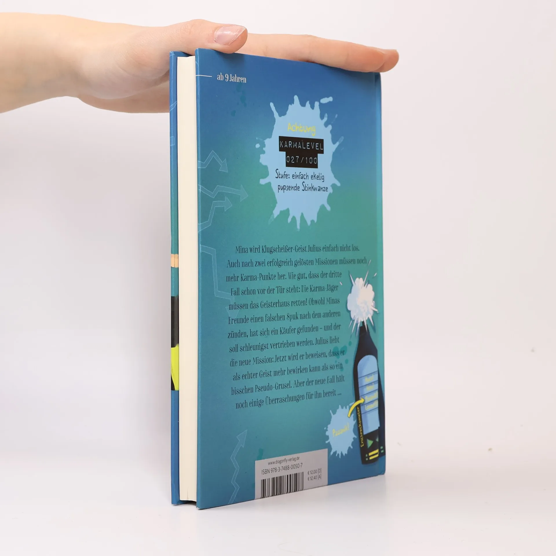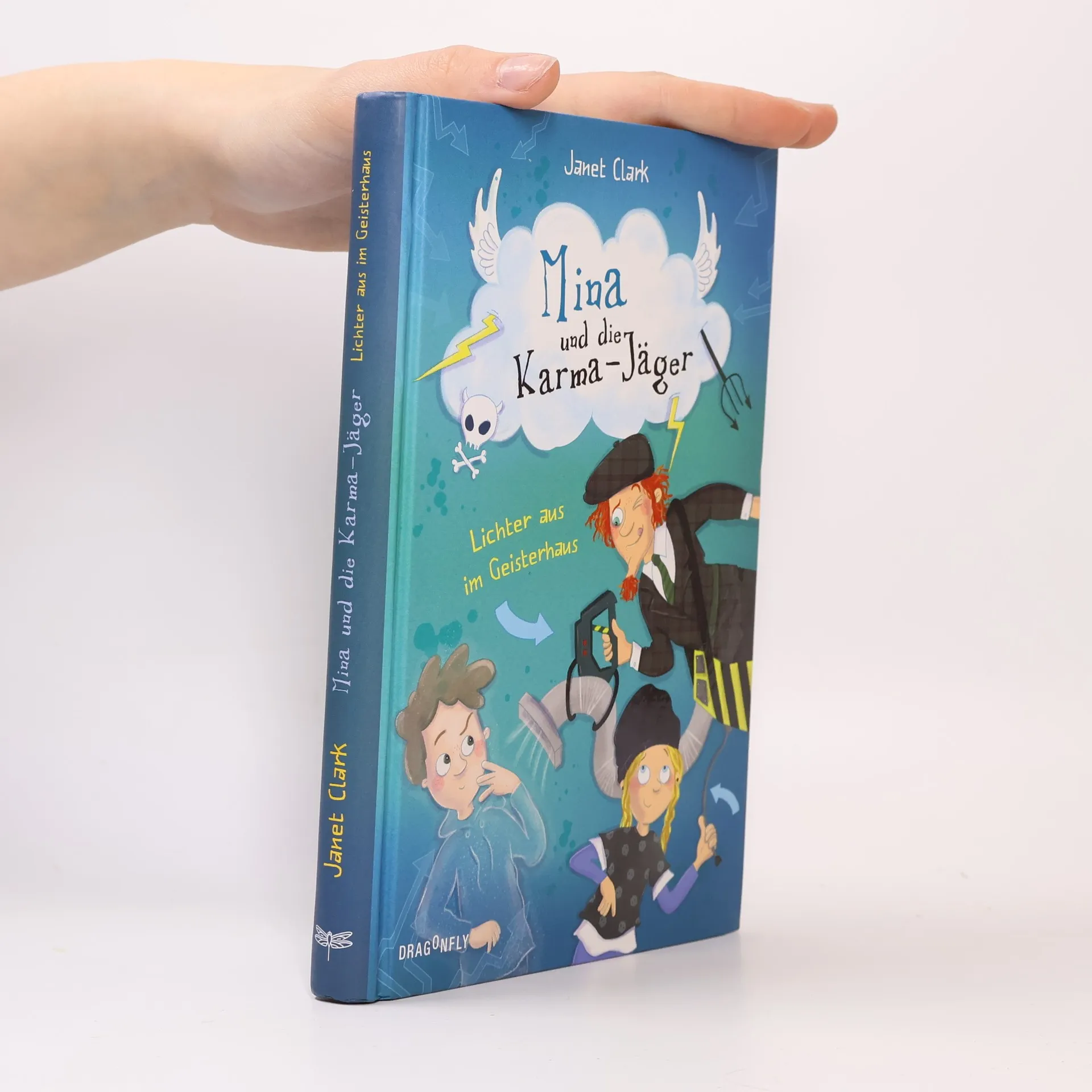 Klugscheißer-Geist trifft auf Girlpower! Mina wird Klugscheißer-Geist Julius einfach nicht los. Auch nach zwei erfolgreich gelösten Missionen müssen noch mehr Karma-Punkte her. Wie gut, dass der dritte Fall schon vor der Tür steht: Die Karma-Jäger müssen das Geisterhaus retten! Obwohl Minas Freunde einen falschen Spuk nach dem anderen zünden, hat sich ein Käufer gefunden – und der soll schleunigst vertrieben werden. Julius liebt die neue Mission: Jetzt wird er beweisen, dass er als echter Geist mehr bewirken kann als so ein bisschen Pseudo-Grusel. Aber der neue Fall hält noch einige Überraschungen vor ihn bereit ... Der dritte Fall der Karmajäger-Reihe von Bestsellerautorin Janet Clark!