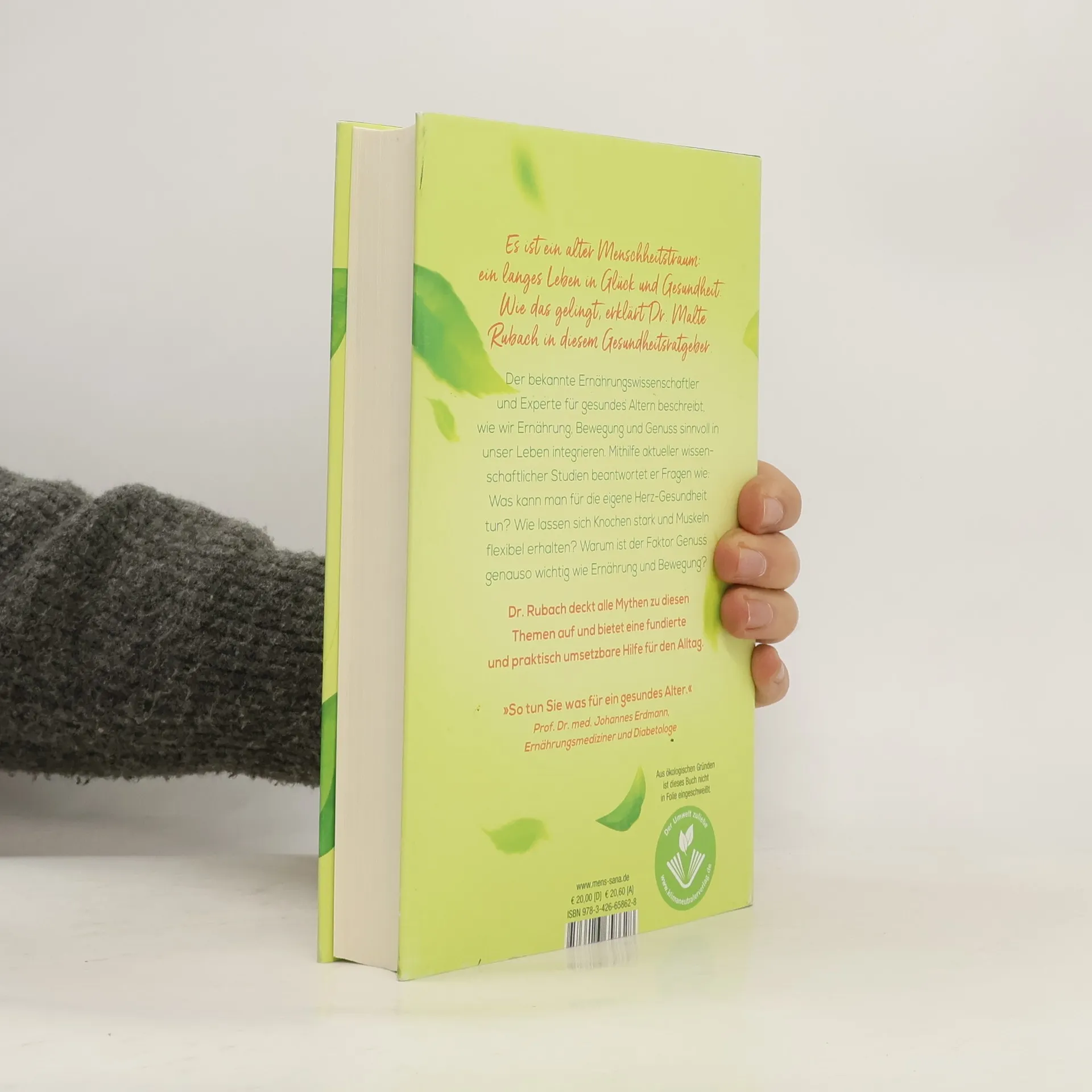 Der Ratgeber für ein langes Leben: Das ultimative Fazit aller wissenschaftlichen Studien zum Thema Gesund-Altern - mit vielen praktischen Anwendungen. Es ist ein alter Menschheitstraum: ein langes Leben in Glück und Gesundheit. Die moderne Altersforschung bietet eine ganze Reihe gesicherter Erkenntnisse, wie wir länger körperlich wie mental fit bleiben. Beides hängt eng miteinander zusammen.Wie lautet also die Wunder-Formel? Kurz gesagt: Es geht um das richtige Maß an Ernährung, Bewegung und Genuss. Der gefragte promovierte Ernährungswissenschaftler und Experte für gesundes Altern Dr. Malte Rubach erklärt in seinem neuen Gesundheits-Ratgeber mithilfe aller aktuellen wissenschaftlichen Studien, wie es gelingt, gesund und glücklich alt zu werden. Was kann man zum Beispiel für die eigene Herz-Gesundheit tun? Wie lassen sich Knochen stark und Muskeln flexibel und voller Energie erhalten? Warum ist der Faktor Genuss genauso wichtig wie Ernährung und Bewegung? Dr. Rubach deckt alle Mythen zum Thema „Gesund altern“ auf: Weshalb leben die Menschen in den sogenannten Blue Zones der Welt wirklich länger? Verkürzt der Konsum von tierischen Produkten das Leben tatsächlich? Diesen und vielen weiteren Fragen geht er auf den Grund. Fundiert und praktisch umsetzbar mit Hilfe von kleinen Übungen für den Alltag bietet er eine kompakte Essenz des aktuellen Forschungsstands.