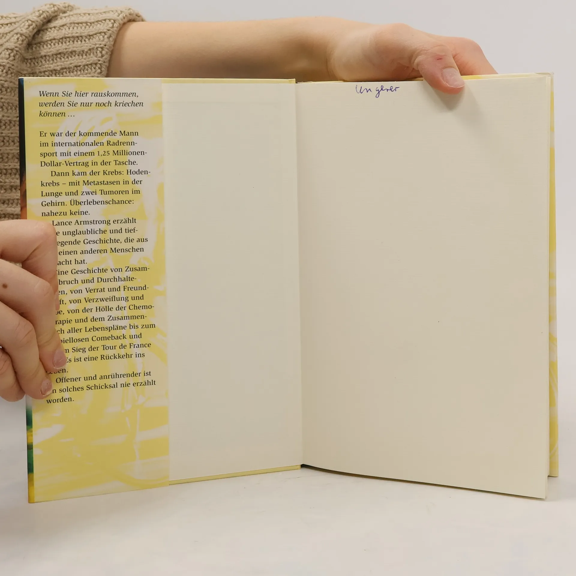 Eine Geschichte von Zusammenbruch und Durchhaltewillen, von Verrat und Freundschaft, von Verzweiflung und Liebe, von der Hölle der Chemotherapie und dem Zusammenbruch aller Lebenspläne - eine Geschichte, die mit der Rückkehr ins Leben endet und den Siegen der Tour de France 1999 und 2000.