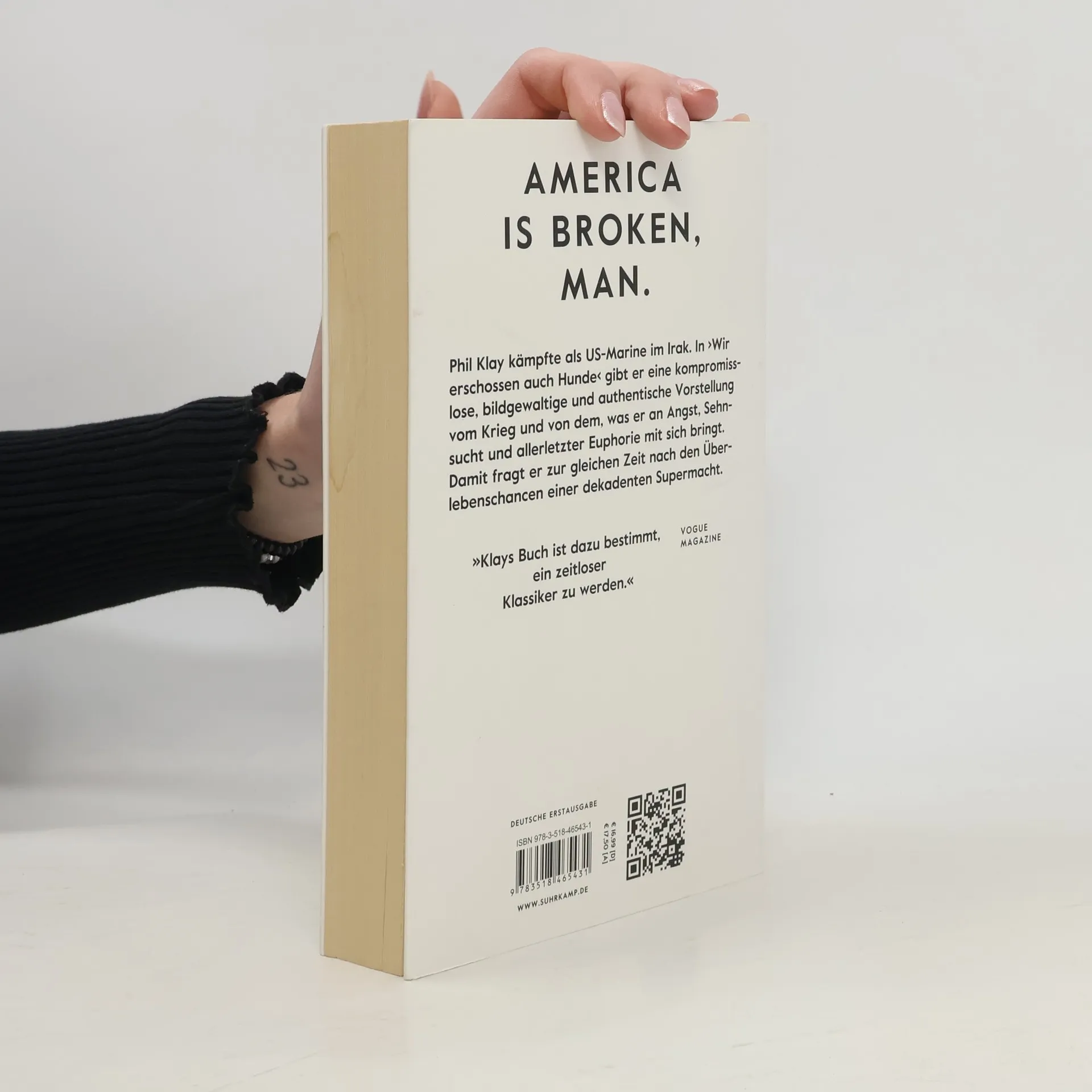 2001 ziehen die USA in den Krieg. Gegen Bin Laden, gegen Hussein, und vor allem gegen den eigenen Bedeutungsverlust. Heute ist Saddam tot, Osama auch, doch die einzige Supermacht ist schwächer als je zuvor. In »Wir erschossen auch Hunde« erzählt Phil Klay von den jungen Männern, die in diesem Krieg den höchsten Preis zahlen mussten. Es sind knallharte Erzählungen von Häuserkämpfen in Falludscha, aussichtslosen Hilfsmissionen in Afghanistan und dem Heimkehren in ein fremdgewordenes Land. Ein Land, das bei all dem Hintergrundrauschen aus Konsum und Entertainment kein Interesse am Leiden seiner Soldaten hat. Denn ihre traumatischen Erfahrungen beweisen nur die grenzenlose Ohnmacht und lassen etwas erahnen, was noch vor wenigen Jahren unvorstellbar schien: »America is broken, man.« Phil Klay kämpfte als US-Marine im Irak, davon handelt dieses Buch. In »Wir erschossen auch Hunde« gibt er eine authentische Vorstellung vom Krieg und dem, was er an Angst, Sehnsucht und allerletzter Euphorie mit sich bringt. Damit fragt er zur gleichen Zeit kompromisslos und bildgewaltig nach den Überlebenschancen einer dekadenten Supermacht.