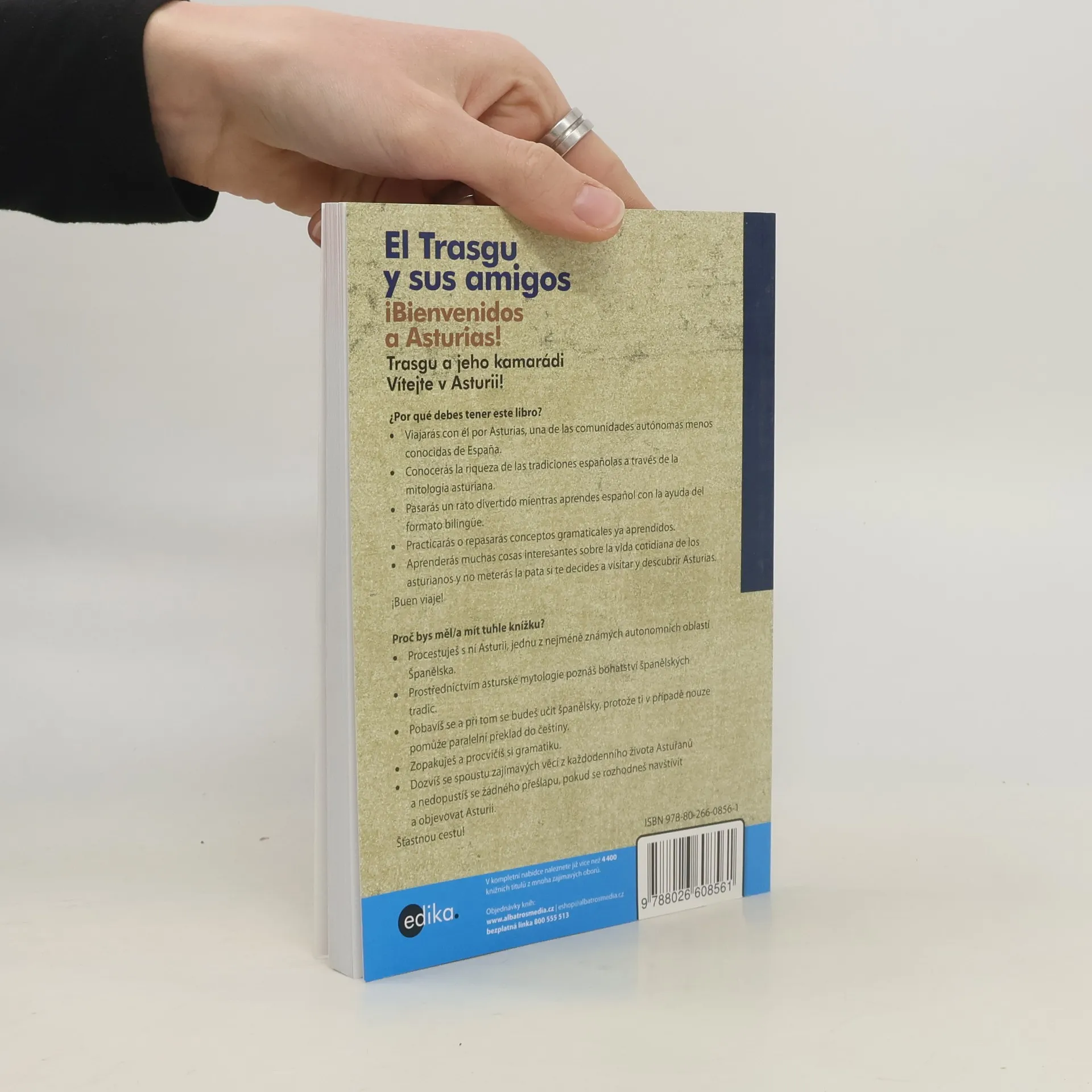 Zábavné setkání se španělštinou. Proč bys měl/a mít tuhle knížku? Procestuješ s ní Asturii, jednu z nejméně známých autonomních oblastí Španělska. Prostřednictvím asturské mytologie poznáš bohatství španělských tradic. Pobavíš se a při tom se budeš učit španělsky, protože ti v případě nouze pomůže paralelní překlad do češtiny. Zopakuješ a procvičíš si gramatiku. Dozvíš se spoustu zajímavých věcí z každodenního života Astuřanů a nedopustíš se žádného přešlapu, pokud se rozhodneš navštívit a objevovat Asturii. Šťastnou cestu! CD obsahuje nahrávky ve formátu MP3.