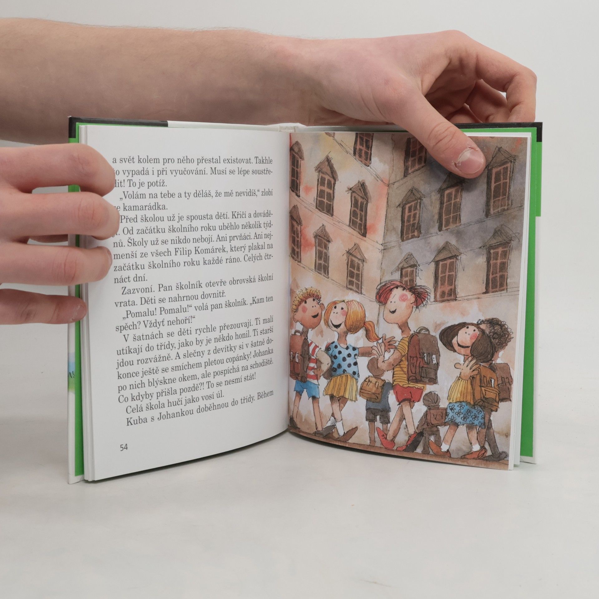 Kuba nechce číst, psát ani počítat. Do první třídy se mu vůbec nechtělo. Co si však počít s žáčkem, kterému se v hlavě honí všechno možné, jen ne škola? Paní učitelka z 1. A na to přišla! Od chvíle, kdy dostala ten skvělý nápad, začaly děti chodit do školy s nadšením. Dokonce i Kuba. A cože to paní učitelka báječného vymyslela? Dozvíte se v naší knížce! Humorné vyprávění o malém Kubovi je pro všechny prvňáčky, jimž škola zatím k srdci příliš nepřirostla. Mohou tak s Kubíkem sdílet jeho neúspěchy i první úspěchy, které sami velmi dobře znají. Mohou mu fandit a držet palce, aby ve svém úsilí vydržel. A především - naučí se s ním dobře číst! Pro začínající čtenáře.