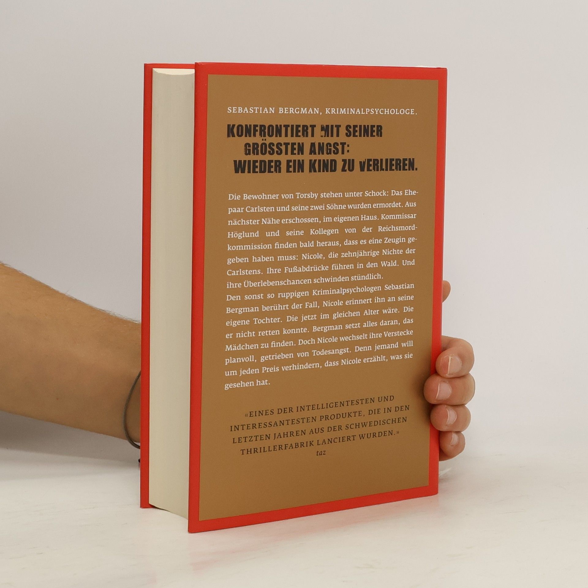 Sebastian Bergman, Kriminalpsychologe. Konfrontiert mit seiner größten Angst: Wieder ein Kind zu verlieren.Die Bewohner von Torsby stehen unter Schock: Das Ehepaar Carlsten und seine zwei Söhne wurden ermordet. Aus nächster Nähe erschossen, im eigenen Haus. Kommissar Torkel Höglund und seine Kollegen von der Reichsmordkommission finden bald heraus, dass es eine Zeugin gegeben haben muss: Nicole, die zehnjährige Nichte der Carlstens. Ihre Fußabdrücke führen in den Wald. Und ihre Überlebenschancen schwinden stündlich. Den sonst so ruppigen Kriminalpsychologen Sebastian Bergman berührt der Fall, Nicole erinnert ihn an seine eigene Tochter. Die jetzt im gleichen Alter wäre. Die er nicht retten konnte. Bergman setzt alles daran, das Mädchen zu finden. Doch Nicole wechselt ihre Verstecke planvoll, getrieben von Todesangst. Denn jemand will um jeden Preis verhindern, dass Nicole erzählt, was sie gesehen hat.