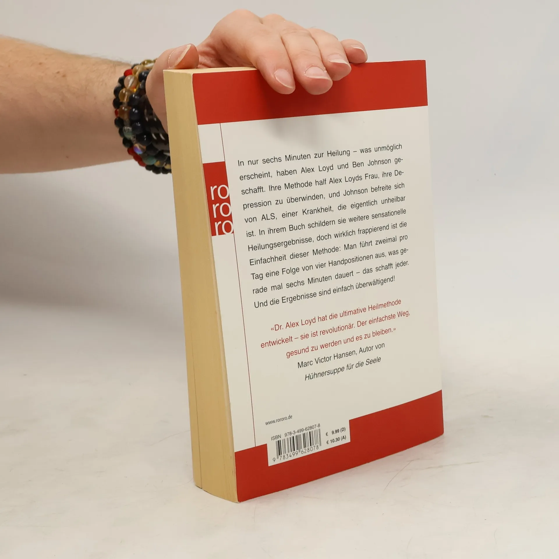 In nur sechs Minuten zur Heilung – was unmöglich erscheint, haben Alex Loyd und Ben Johnson geschafft. Ihre Methode half Alex Loyds Frau, ihre Depression zu überwinden, und Johnson befreite sich von ALS, einer Krankheit, die eigentlich unheilbar ist. In ihrem Buch schildern sie weitere sensationelle Heilungsergebnisse, doch wirklich frappierend ist die Einfachheit dieser Methode: Man führt zweimal pro Tag eine Folge von vier Handpositionen aus, was gerade mal sechs Minuten dauert – das schafft jeder. Und die Ergebnisse sind einfach überwältigend!«Dr. Alex Loyd hat die ultimative Heilmethode entwickelt – sie ist revolutionär. Der einfachste Weg, gesund zu werden und es zu bleiben.» Marc Victor Hansen, Autor von Hühnersuppe für die Seele