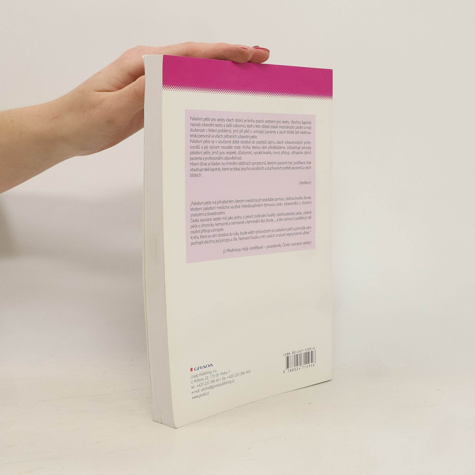 První publikace v oblasti paliativní péče na českém trhu, která je psaná sestrami pro sestry. Kniha je určena sestrám všech oblastí ošetřovatelské péče, ale i studentům a pedagogům. Vzhledem k tomu, že velké procento pacientů umírá v nemocnici, netýká se paliativní péče pouze pacientů s onkologickým onemocněním, ale všech, kteří se ocitají v terminální fázi svého života. Kniha zkušených autorů z celého světa poskytuje sestrám teoretické, ale především praktické poznatky, které jim pomohou lépe se orientovat ve specifikách péče o nemocné v terminálním stadiu nemoci. Sestry a studenti budou po jejím přečtení lépe znát tělesné a psychické symptomy, které terminální onemocnění provázejí, budou lépe komunikovat s pacienty, jejich blízkými i ostatními zdravotnickými pracovníky, budou se lépe orientovat v problematice truchlení, stresu zdravotníků i rodinných příslušníků. Nové znalosti umožní sestrám lépe poznat potřeby umírajících pacientů a jejich rodin a plánovat ošetřovatelskou péči. Kromě péče o onkologického pacienta autoři zařadili také paliativní péči v pediatrii, urgentní medicíně a u pacientů s demencí a chronickým onemocněním.