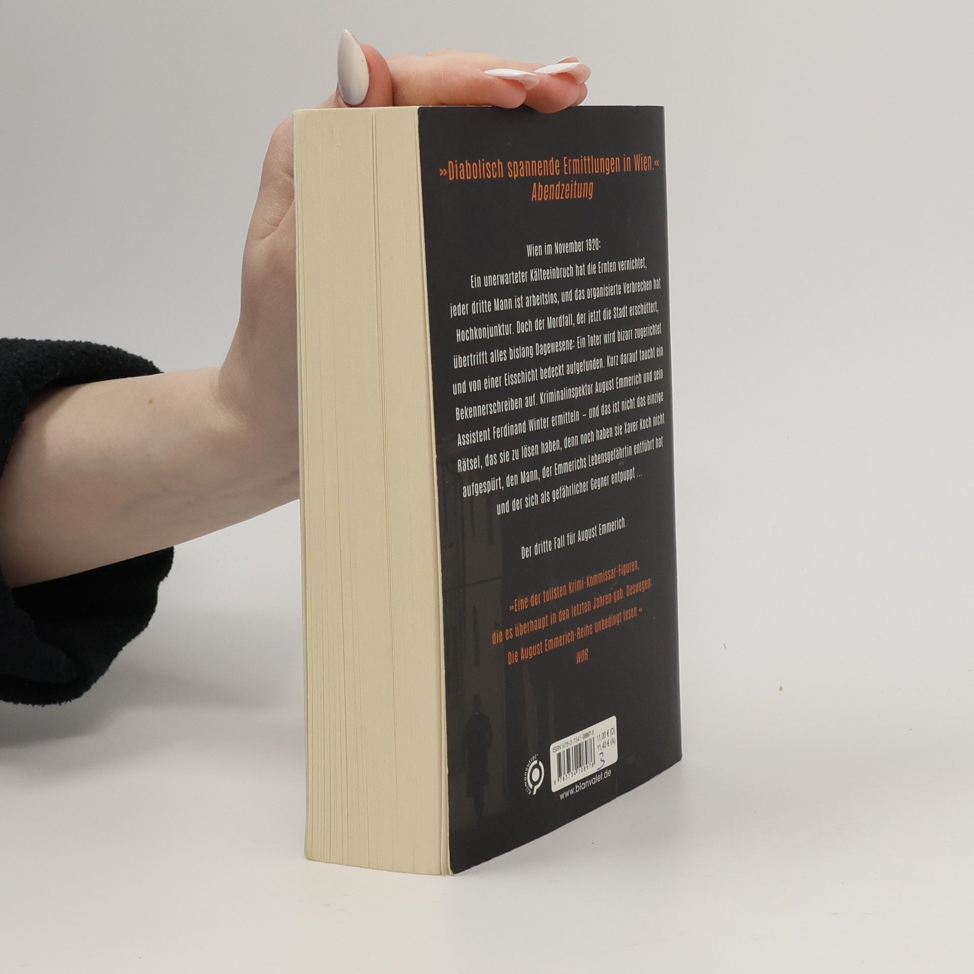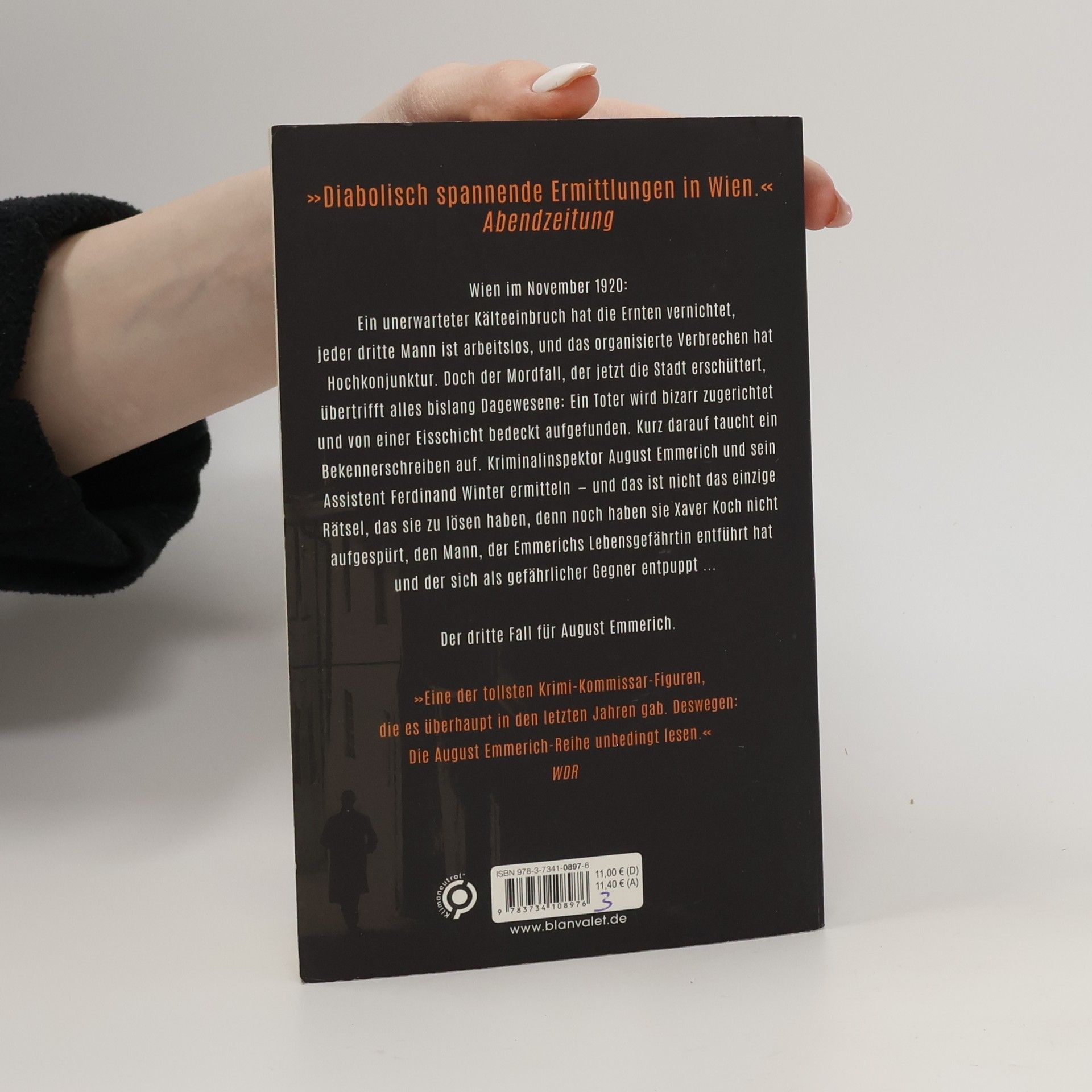 Grausam zugerichtete Leichen, ein Mörder, der alte Verbrechen sühnt, und ein Kommissar, für den es um alles geht … Wien im November 1920: Ein unerwarteter Kälteeinbruch hat die Ernten vernichtet, jeder dritte Mann ist arbeitslos, und das organisierte Verbrechen hat Hochkonjunktur. Doch der Mordfall, der jetzt die Stadt erschüttert, übertrifft alles bislang Dagewesene: Ein Toter wird bizarr zugerichtet und von einer Eisschicht bedeckt aufgefunden. Kurz darauf taucht ein Bekennerschreiben auf. Kriminalinspektor August Emmerich und sein Assistent Ferdinand Winter ermitteln – und das ist nicht das einzige Rätsel, das sie zu lösen haben, denn noch haben sie Xaver Koch nicht aufgespürt, den Mann, der Emmerichs Lebensgefährtin entführt hat und der sich als gefährlicher Gegner entpuppt ...Mord auf Wienerischem Pflaster – August Emmerich ermittelt:Band 1: Der zweite ReiterBand 2: Die rote FrauBand 3: Der dunkle BoteBand 4: Das schwarze BandAlle Bände sind eigenständige Fälle und können unabhängig voneinander gelesen werden.
