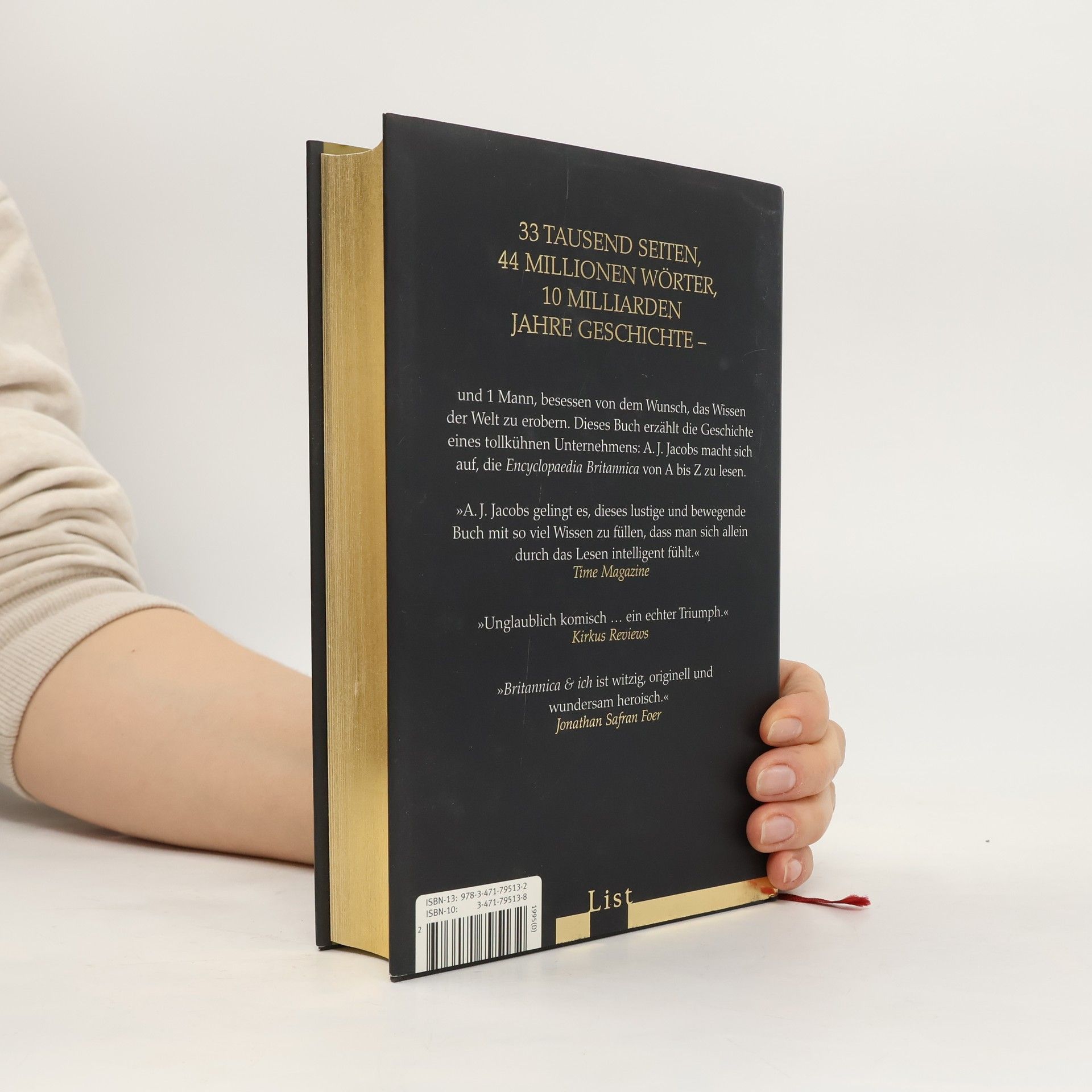 33 Tausend Seiten, 44 Millionen Wörter, 10 Milliarden Jahre Geschichte – und 1 Mann, besessen von dem Wunsch, das Wissen der Welt zu erobern. Britannica & ich ist die Geschichte eines tollkühnen Unternehmens: A. J. Jacobs macht sich auf, die Encyclopaedia Britannica von A bis Z zu lesen. A. J. Jacobs weiß, daß die Achagua-Indianer Seen anbeteten, er weiß, daß Brandy von einem Holländer erfunden wurde und daß Napoleon gern Schlittschuh lief. Er weiß das alles, weil er die Encyclopaedia Britannica von A bis Z durchliest. Seine Frau Julie ist der Meinung, es sei reine Zeitverschwendung, seine Freunde halten ihn für verrückt. Nur sein Vater, der einst dasselbe Vorhaben begann – allerdings nur bis Borneo kam – unterstützt ihn. Über 15 Monate hinweg bewegt sich A. J. Jacobs nun auf dem Pfad der breiten Allgemeinbildung: Goethe oder Pythagoras, die Auster oder ein unaussprechlicher Ort in Polen, alles wird angeschaut, memoriert und mit höchst geistreichen Kommentaren versehen. Mit viel Sinn für Komik und absurde Details erzählt er, welche Auswirkungen die »Operation Britannica« auf sein Leben hat – auf seine Ehe, seine charmante, aber exzentrische Familie und seine Arbeit als Journalist.