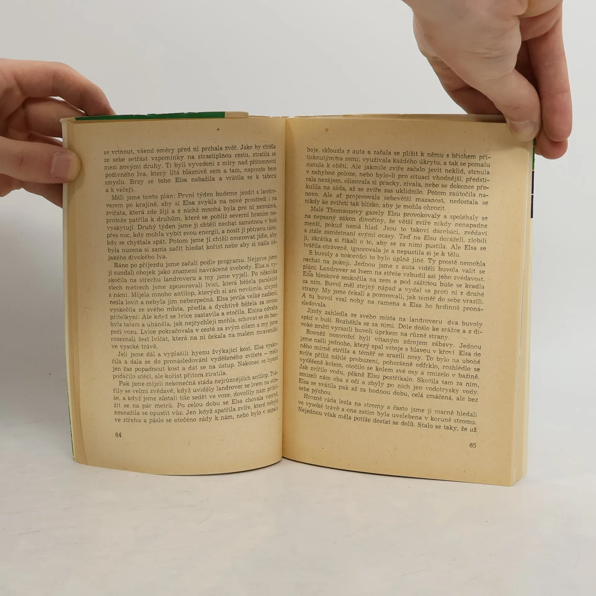 Nesmrtelné vyprávění o neobyčejném přátelství ženy a lvice, zachycuje životní osudy roztomilé, hravé Elsy – jak byla odchována lidmi a jak se postupně dokázala vrátit do náruče rodné divočiny, najít si druha a stát se matkou tří mláďat. Příběh Elsy je silným čtenářským zážitkem a zároveň unikátní studií psychologie divokých zvířat, působivým důkazem jejich inteligence, sebeovládání a emočních schopností. Vyprávění o soužití člověka se zvířaty na farmě i v buši je prosycené nádhernými, veselými i smutnějšími zážitky.