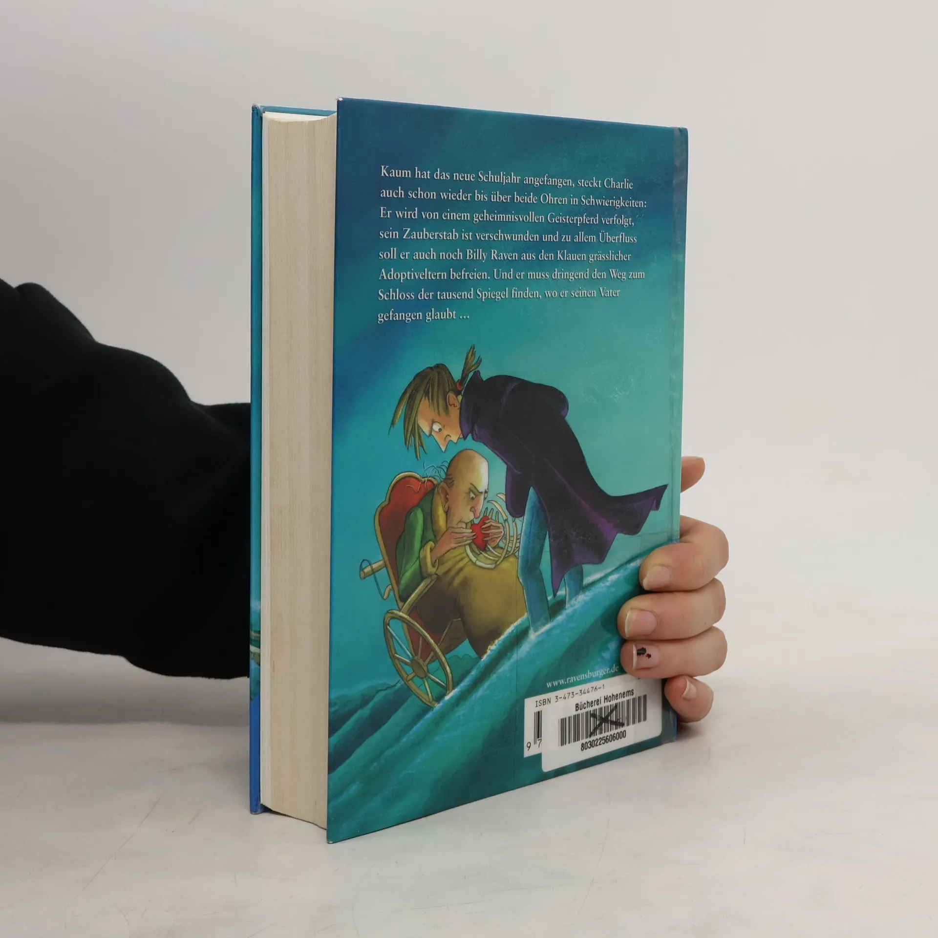 Kaum hat das neue Schuljahr angefangen, steckt Charlie auch schon wieder bis über beide Ohren in Schwierigkeiten: Erst wird er von einem geheimnisvollen Geisterpferd verfolgt, dann verschwindet sein Zauberstab und zu allem Überfluss soll er auch noch Billy Raven aus den Klauen grässlicher Adoptiveltern befreien. Und er muss dringend den Weg zum Schloss der tausend Spiegel finden, wo Billy etwas über seine Herkunft erfahren soll - und in dem Charlie seinen Vater gefangen glaubt ..