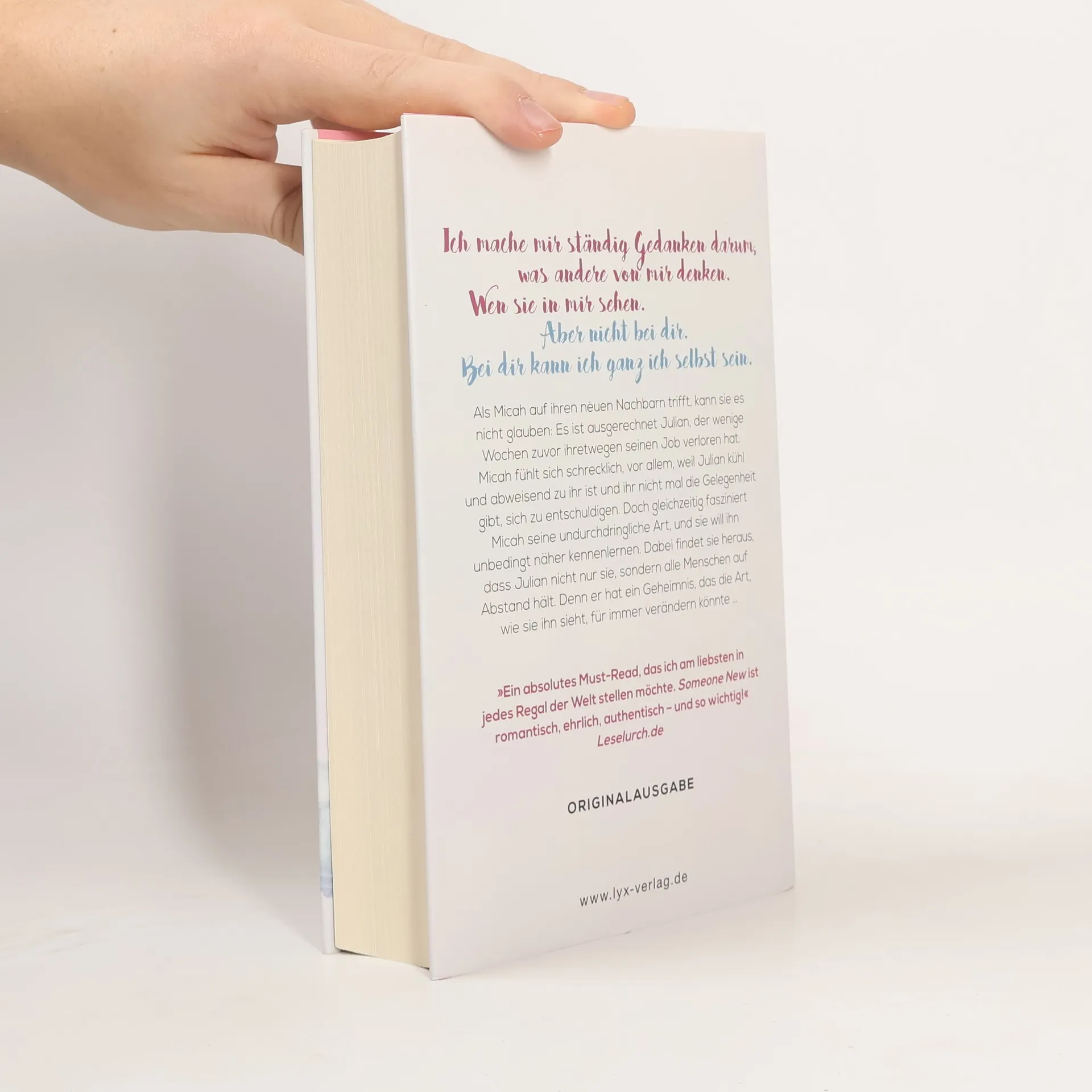 Die Special Edition von "Someone New” - Limitierte Auflage - Handsigniert von Laura Kneidl - Mit exklusiven Illustrationen - Hardcover mit Schutzumschlag Ich mache mir ständig Gedanken darum, was andere Menschen von mir denken. Wen sie in mir sehen. Aber nicht bei dir. Bei dir kann ich ganz ich selbst sein. Als Micah auf ihren neuen Nachbarn trifft, kann sie es nicht glauben: Es ist ausgerechnet Julian, der wenige Wochen zuvor ihretwegen seinen Job verloren hat. Micah fühlt sich schrecklich, vor allem, weil Julian kühl und abweisend zu ihr ist und ihr nicht mal die Gelegenheit gibt, sich zu entschuldigen. Doch gleichzeitig fasziniert Micah seine undurchdringliche Art, und sie will ihn unbedingt näher kennenlernen. Dabei findet sie heraus, dass Julian nicht nur sie, sondern alle Menschen auf Abstand hält. Denn er hat ein Geheimnis, das die Art, wie sie ihn sieht, für immer verändern könnte. "Ein absolutes Must-Read, das ich am liebsten in jedes Regal der Welt stellen möchte. Someone New ist romantisch, ehrlich, authentisch - und so wichtig!" Leselurch.de Nach "Berühre mich. Nicht" und "Verliere mich. Nicht." - der neue Roman von Platz-1-Spiegel-Bestseller-Autorin Laura Kneidl