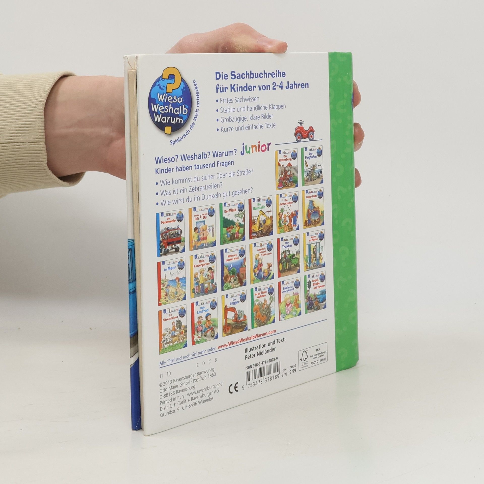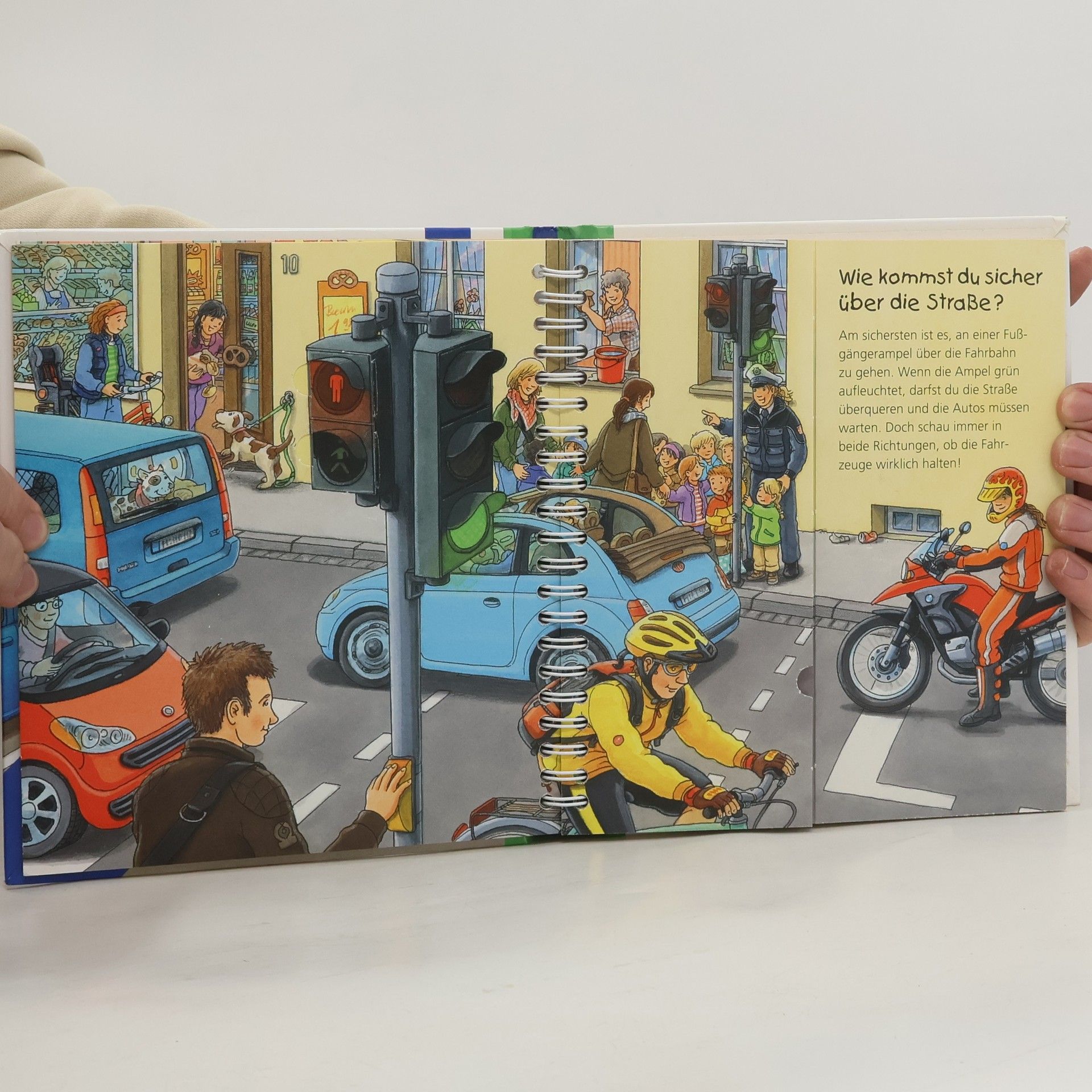 Wie überquert man eine Straße an einer Ampel oder einem Zebrastreifen? Wie wird man im Dunkeln gut gesehen? Kleine Kinder sind zwar noch nicht allein im Straßenverkehr unterwegs, trotzdem können sie in gefährliche Situationen geraten. Dieses Buch bringt ihnen anhand eindrücklicher Szenen und Bewegungsklappen die einfachsten Verhaltensregeln näher. Zum Abschluss können die Kinder in einem Richtig-Falsch-Quiz das Gelernte anwenden.