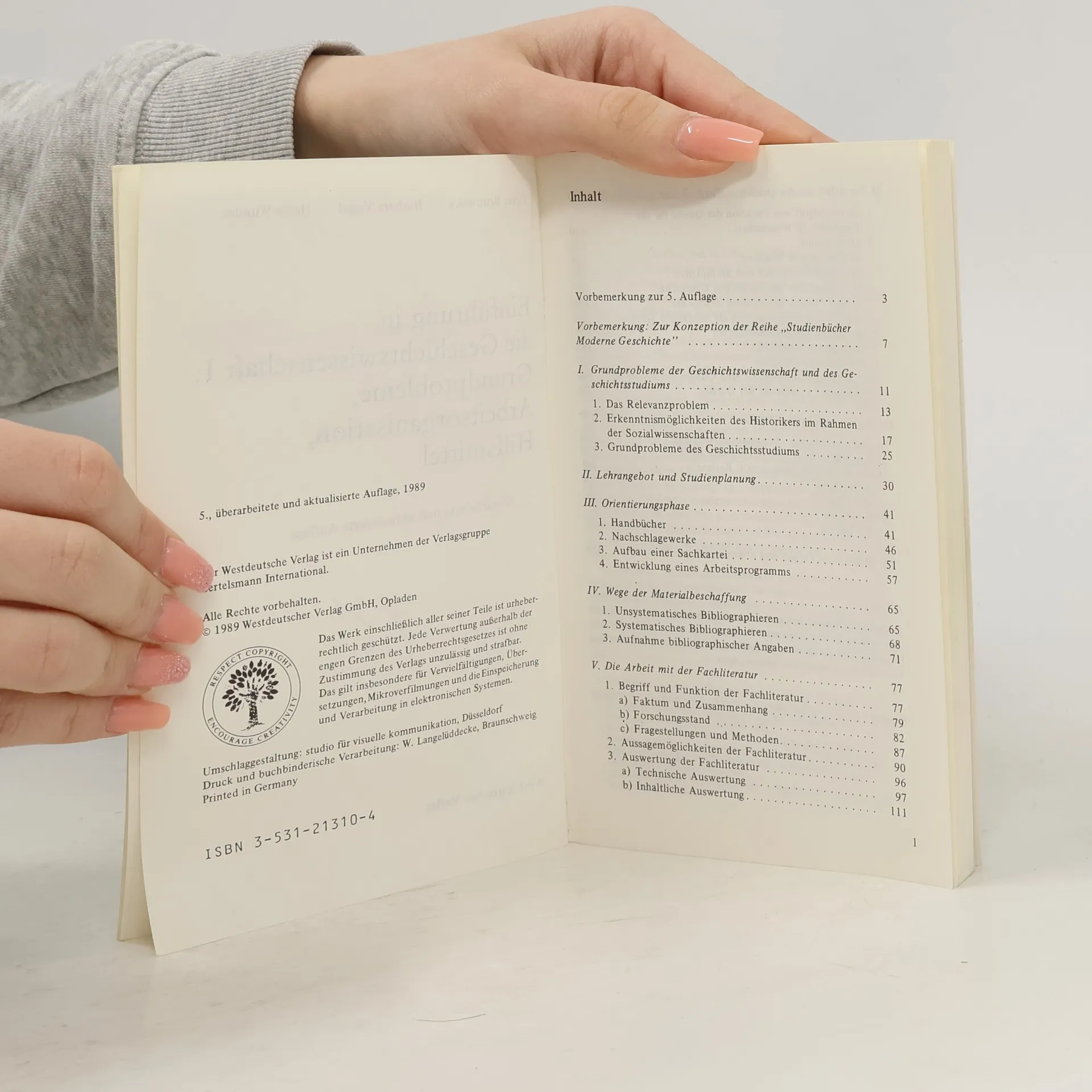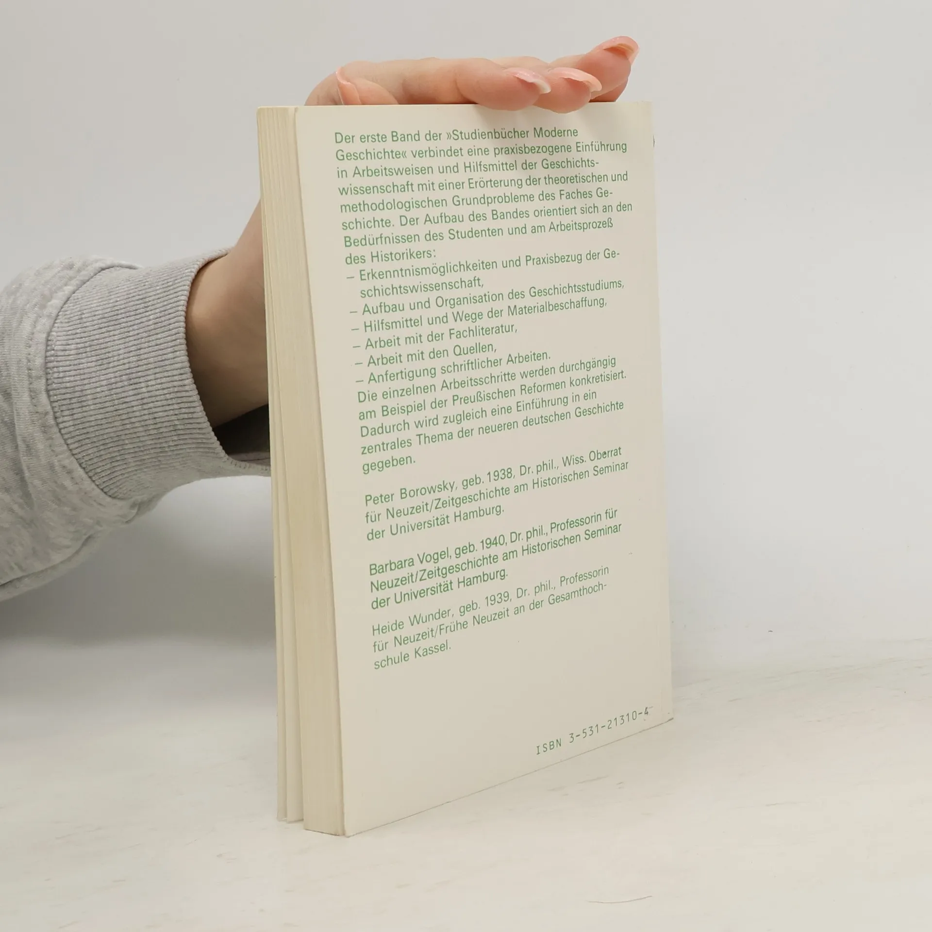 Einführung in die Geschichtswissenschaft I. Grundprobleme, Arbeitsorganisation, Hilfsmittel. Studienbücher Moderne Geschichte 1, Heide Wunder, Barbara Vogel, Peter Borowsky
