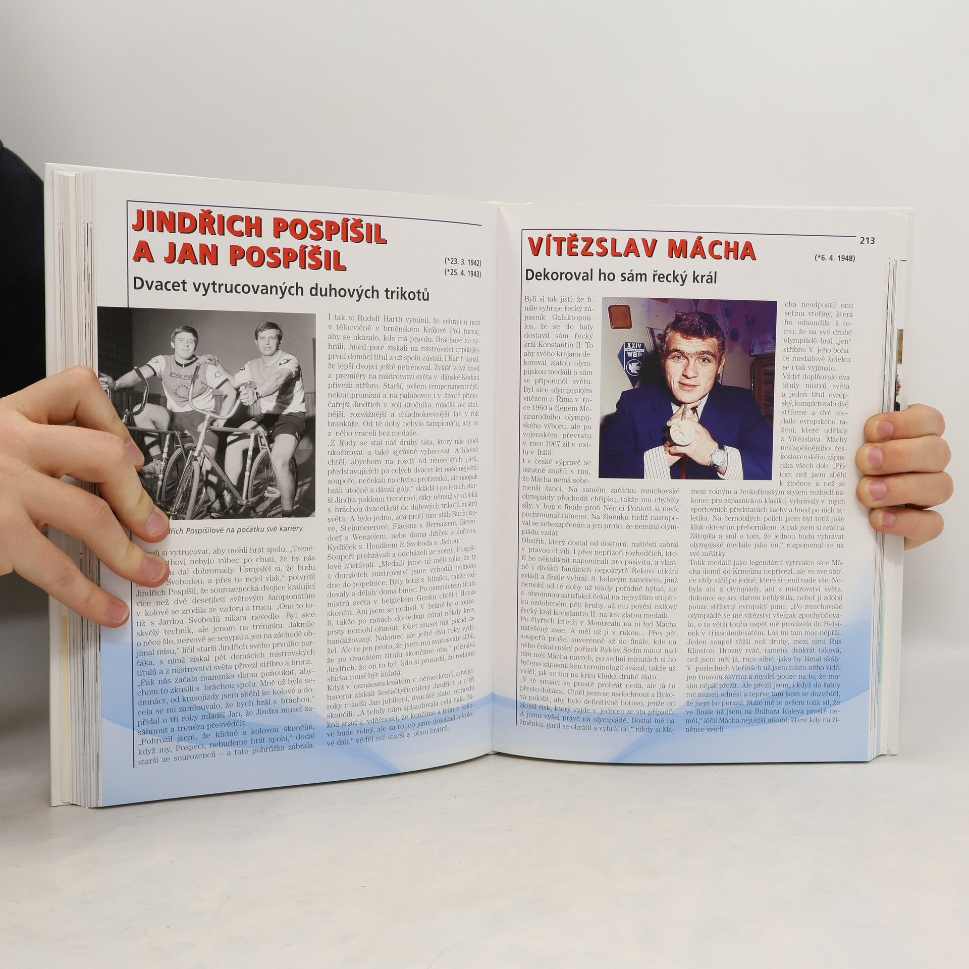 Výpravná publikace, která vyjde v září v Nakladatelství Olympia, nabízí unikátní pohled na český sport. Podrobně mapuje jeho historii a současnost, přičemž v jednotlivých desetiletích připomíná nejdůležitější sportovní události a osobnosti. Obsáhlá rubrika Jak šel čas chronologicky zaznamenává stovky klíčových výsledků a statistických informací. Množství ilustračních fotografií zachycuje zlomové okamžiky významných sportovních akcí a klíčové postavy, které se podílely na největších úspěších. Kniha obsahuje profily nejvýznamnějších postav českého sportu, včetně legend jako Gustav Frištenský, Karel Pešek-Káďa, Bedřich Šupčík, Alois Hudec, František Plánička, Josef Bican, Vladimír Zábrodský, Emil a Dana Zátopkovi, Eva Bosáková, Eva a Pavel Romanovi, Josef Masopust, Jiří Raška a Věra Čáslavská. Nechybí ani medailony nedávných a současných hvězd, jako jsou Jan Železný, Dominik Hašek, Jaromír Jágr, Pavel Nedvěd, Barbora Špotáková, Martina Sáblíková, Lukáš Krpálek a Ester Ledecká. Tato publikace představuje unikátní soubor informací, které dosud nebyly v České republice zpracovány tak komplexně. Poskytuje pestrý a ucelený pohled na dlouhou cestu, kterou český sport a jeho osobnosti dosud urazily. Druhé vydání.