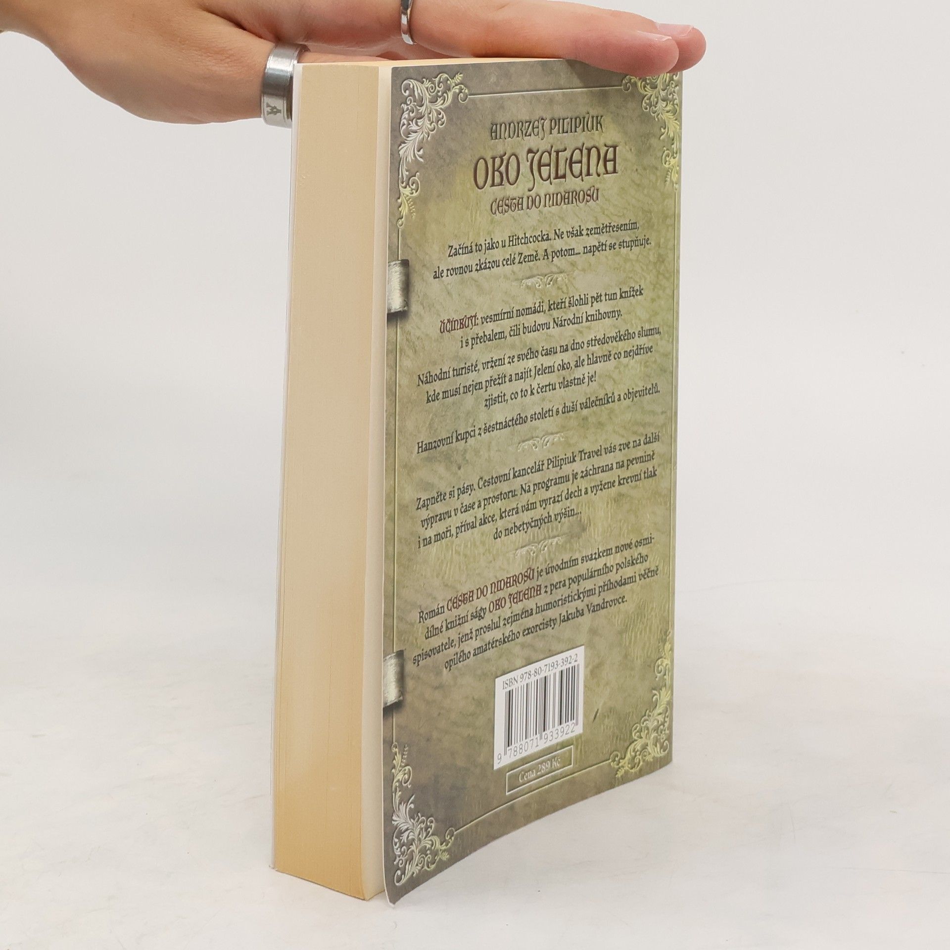 Začíná to jako u Hitchcocka. Ne však zemětřesením, ale rovnou zkázou celé Země. A potom… napětí stále roste. V příběhu účinkují: Vesmírní nomádi, kteří šlohli pět tun knížek i s přebalem, čili budovu Národní knihovny. Náhodní turisté, vržení ze svého času na dno středověkého slumu, kde musí nejen přežít a najít Jelení oko, ale hlavně co nejdříve zjistit, co to k čertu vlastně je! A v neposlední řadě hansovní kupci z šestnáctého století s duší válečníků a objevitelů. Zapněte si pásy. Cestovní kancelář Pilipiuk Travel vás zve na další výpravu v čase a prostoru. Na programu je survival na pevnině i na moři, příval akce, která vám vyrazí dech a krevní tlak vyžene do nebetyčných výšin! Román Cesta do Nidarosu je úvodním svazkem nové šestidílné knižní ságy Oko jelena z pera populárního polského spisovatele, jenž proslul zejména humoristickými příhodami věčně opilého amatérského exorcisty Jakuba Vandrovce.