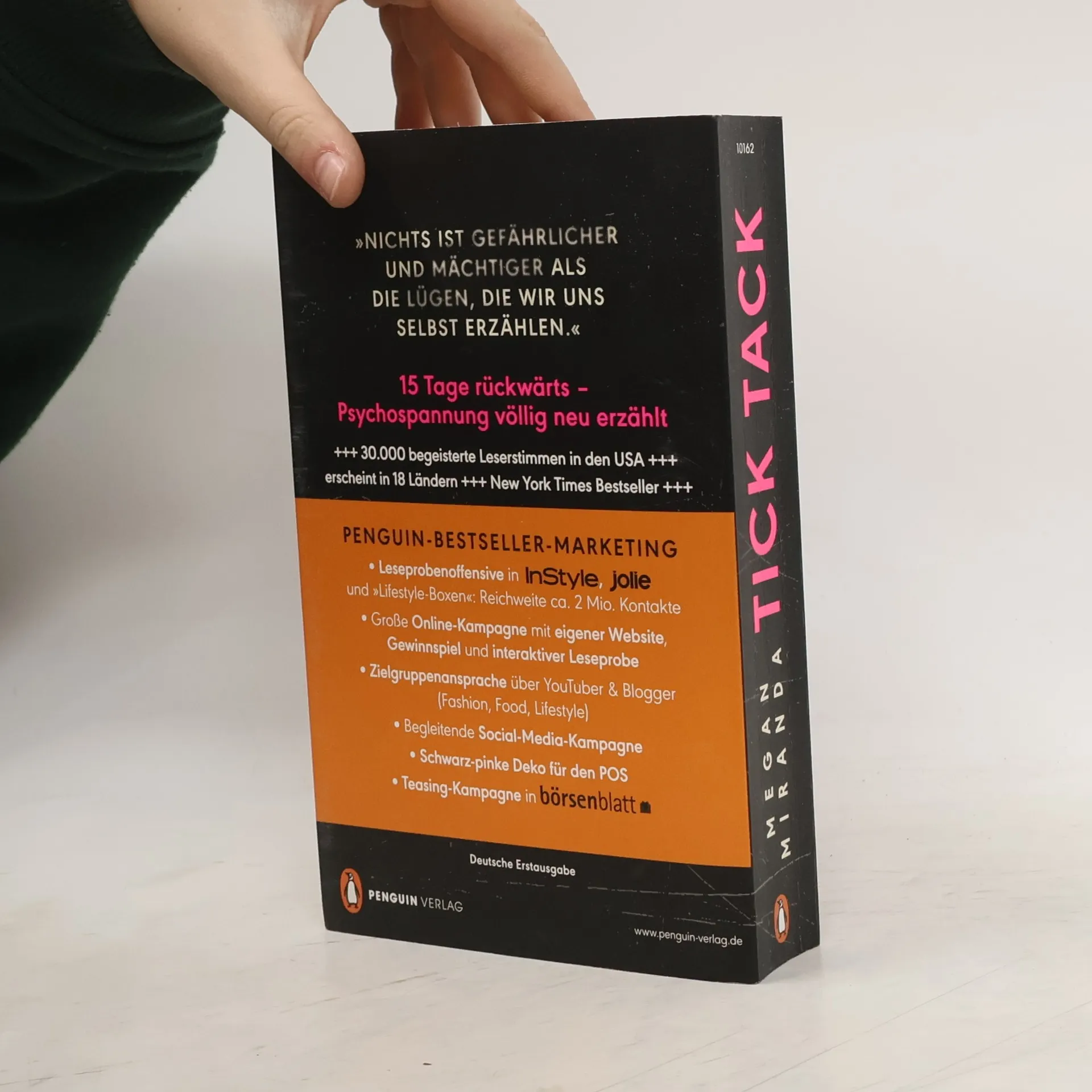 15 Tage. 2 Freundinnen. 1 Mord. Zehn Jahre ist es her, dass Nic ihre Heimatstadt von einem Tag auf den anderen verließ. Doch die Erinnerungen an die Nacht, in der ihre beste Freundin Corinne spurlos verschwand, haben sie nie losgelassen. Hatte jemand aus ihrem Freundeskreis etwas damit zu tun? Eines Tages erhält sie eine geheimnisvolle Nachricht: „Dieses Mädchen. Ich habe es gesehen.“ Nic weiß, dass nur eine damit gemeint sein kann – Corinne. Sie fährt zurück in das von dunklen Wäldern umgebene Städtchen, um herauszufinden, was damals wirklich geschah. Doch schon am selben Abend verschwindet erneut ein Mädchen – das Mädchen, das ihnen allen damals ein Alibi geliefert hatte … Zwei Wochen später wird die Leiche einer jungen Frau gefunden. Wer ist sie? Was ist in der Zwischenzeit passiert? Auf unheimlich geschickte Weise erzählt Megan Miranda diese Geschichte rückwärts. Von Tag 15 zu Tag 14 zu Tag 13 bis schließlich zurück bis zu Tag 1 offenbart sich uns nach und nach, was seit Nics Rückkehr passiert ist – und was zehn Jahre zuvor mit Corinne geschah. Das perfekte Geschenk: aufwendig veredelte Ausstattung