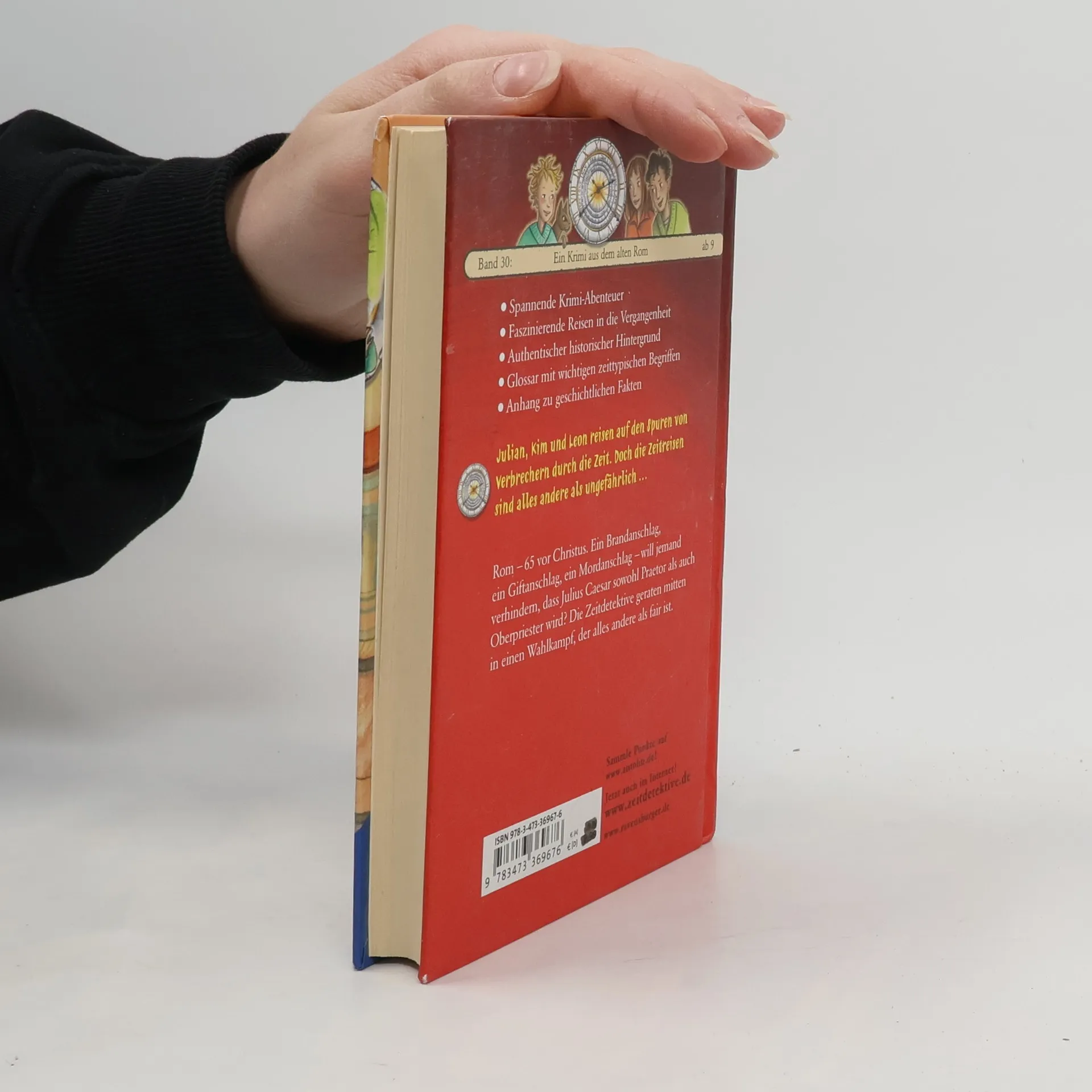Julian, Kim und Leon reisen auf den Spuren von Verbrechern durch die Zeit. Doch die Zeitreisen sind alles andere als ungefährlich … Rom - 65 vor Christus. Ein Brandanschlag, ein Giftanschlag, ein Mordanschlag. Will jemand verhindern, dass Julius Caesar sowohl Priester als auch Oberpriester wird? Die Zeitdetektive geraten mitten in einen Wahlkampf, der alles andere als fair ist. Die Zeitdetektive erleben spannende Krimi-Abenteuer und faszinierende Reisen in die Vergangenheit in einem authentischen historischen Hintergrund.