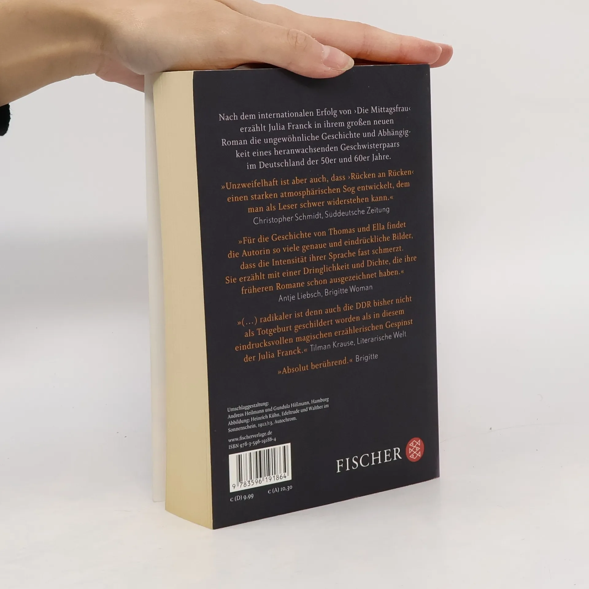 Nach dem internationalen Erfolg von ›Die Mittagsfrau‹ erzählt Julia Franck in ihrem großen neuen Roman eine ergreifende Familiengeschichte im Deutschland der 50er und 60er Jahre. Ostberlin, Ende der 50er Jahre. Die Geschwister Ella und Thomas wachsen auf sich allein gestellt im Haus der Bildhauerin Käthe auf. Sie sind einander Liebe und Gedächtnis, Rücken an Rücken loten sie ihr Erwachsenwerden aus. Ihre Unschuld und das Leben selbst stehen dabei auf dem Spiel. Käthe, eine kraftvolle und schroffe Frau, hat sich für das kommunistische Deutschland entschieden. Leidenschaftlich vertritt sie die Erfindung einer neuen Gesellschaft, doch ihr Einsatz fordert Tribut. Im Schatten scheinbarer Liberalität setzen Kälte und Gewalt Ella zu. Während sie mal in Krankheit flieht und mal trotzig aufbegehrt, versucht Thomas sich zu fügen, doch nur schwer erträgt er die Erniedrigungen und flüchtet in die unglückliche Liebe zu Marie. Julia Franck zeichnet das Bild einer Epoche, die die Frage nach Aufrichtigkeit neu stellt. Sie erzählt von großer Liebe ohne Rückhalt und einer Utopie mit tragischem Ausgang – eine Familiengeschichte, die zum Gesellschaftsroman wird.
