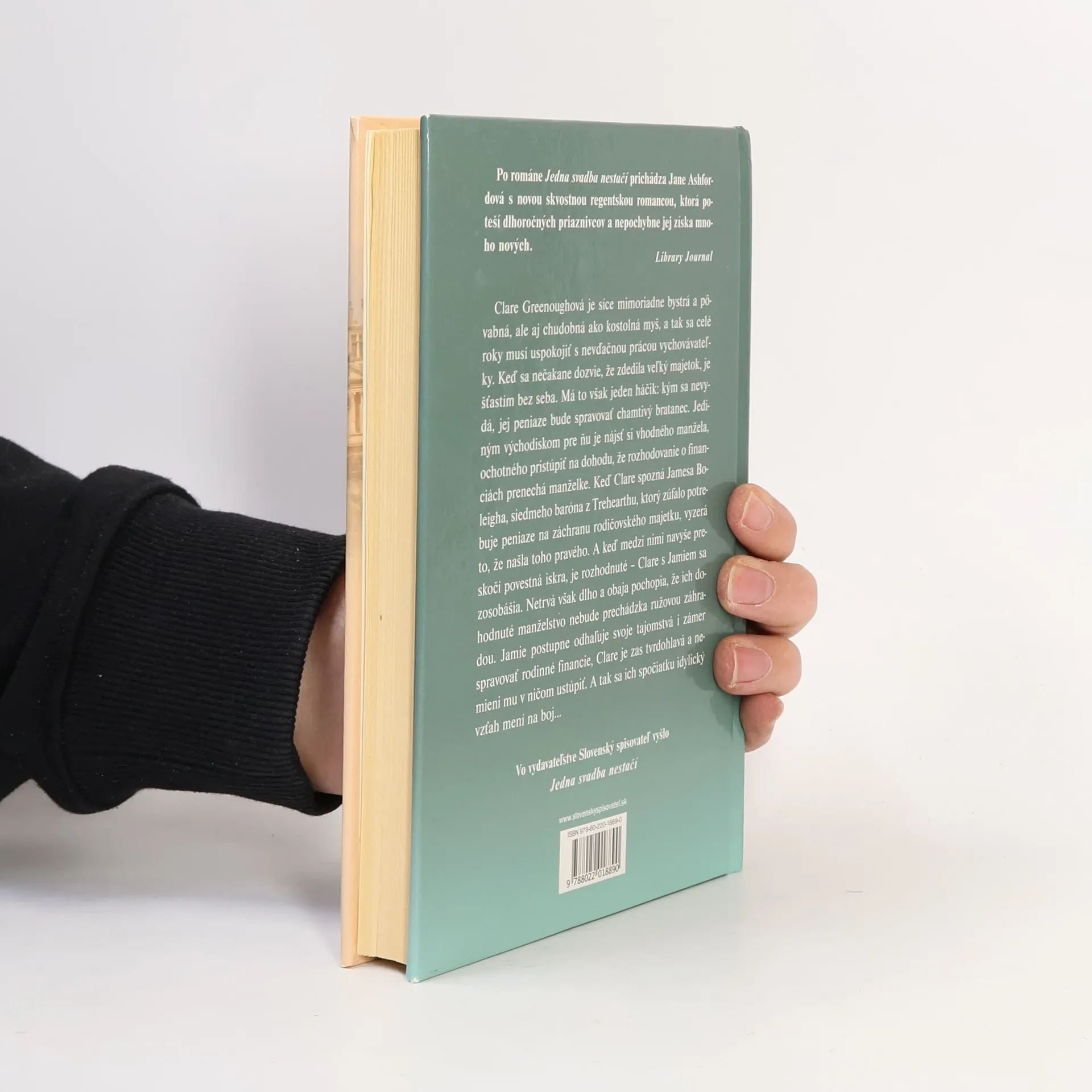 Ďalšia skvostná regentská romanca autorky románu Jedna svadba nestačí. Clare Greenoughová je síce mimoriadne bystrá a pôvabná, ale aj chudobná ako kostolná myš. Keď sa nečakane dozvie, že zdedila veľký majetok, je šťastím bez seba. Má to však jeden háčik: kým sa nevydá, jej peniaze bude spravovať chamtivý bratanec Simon. Jediným východiskom je nájsť si vhodného manžela, ochotného pristúpiť na dohodu, že rozhodovanie o financiách prenechá manželke. Keď Clare spozná príťažlivého Jamesa Boleigha, siedmeho baróna z Trehearthu, ktorý zúfalo potrebuje peniaze na záchranu rodičovského majetku, vyzerá to, že našla toho pravého...