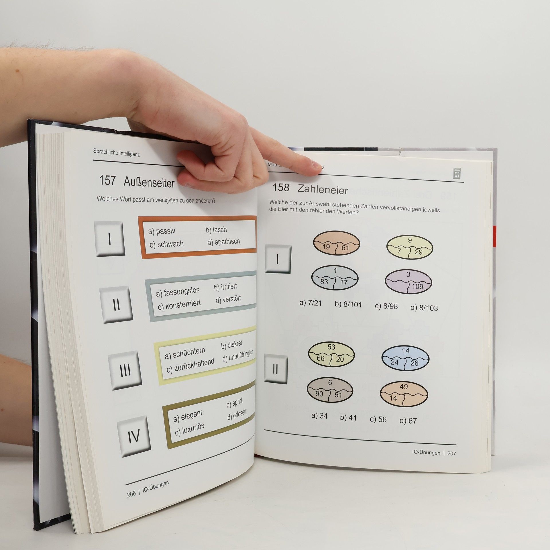 InhaltsverzeichnisIntelligenz ist trainierbar! Und: Mit diesem Buch macht das Spaß! Hatten Sie schon immer Spaß an kniffligen Denksport-Aufgaben? Wollen Sie wissen, wie Sie Ihren IQ noch steigern können, zum Beispiel im logischen, mathematischen, sprachlichen, visuellen und räumlichen Denken? In diesem Buch finden Sie die 300 besten IQ-Aufgaben, die je gestellt wurden, zum Selberrätseln, Verschenken oder zum gemeinsamen Lösen mit Freunden oder der Familie. Vier im Schwierigkeitsgrad ansteigende Übungskapitel von kinderleicht bis echt schwer geben Ihnen die Möglichkeit, sich ständig spielend zu verbessern! Natürlich finden Sie zu jeder Übung auch eine ausführliche Lösung. So werden Sie Tag für Tag ein bisschen besser!