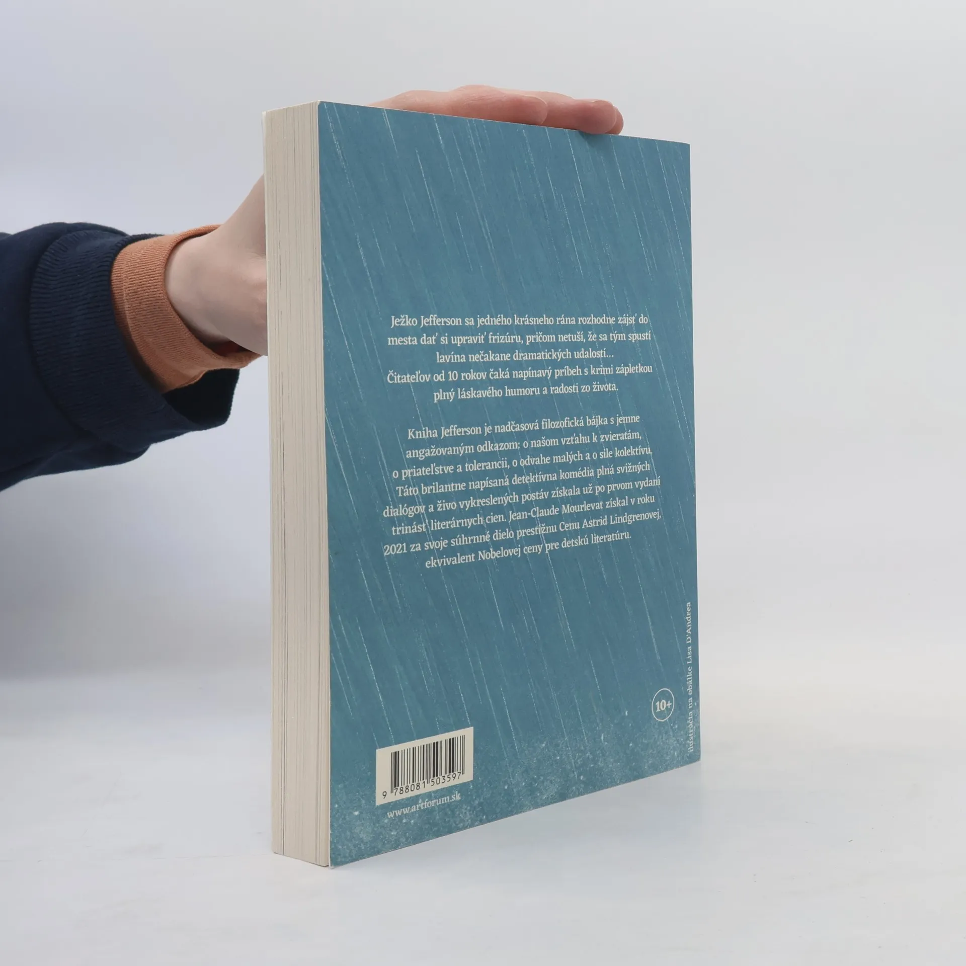 Ježko Jefferson sa jedného krásneho rána rozhodne zájsť do mesta dať si upraviť frizúru, pričom netuší, že sa tým spustí lavína nečakane dramatických udalostí… Čitateľov od 10 rokov čaká napínavý príbeh s krimi zápletkou plný láskavého humoru a radosti zo života. Kniha Jefferson je nadčasová filozofická bájka s jemne angažovaným odkazom: o našom vzťahu k zvieratám, o priateľstve a tolerancii, o odvahe malých a o sile kolektívu. Táto brilantne napísaná detektívna komédia plná svižných dialógov a živo vykreslených postáv získala už po prvom vydaní trinásť literárnych cien. Jean Claude Mourlevat získal v roku 2021 za svoje súhrnné dielo prestížnu Cenu Astrid Lindgrenovej, ekvivalent Nobelovej ceny pre detskú literatúru.