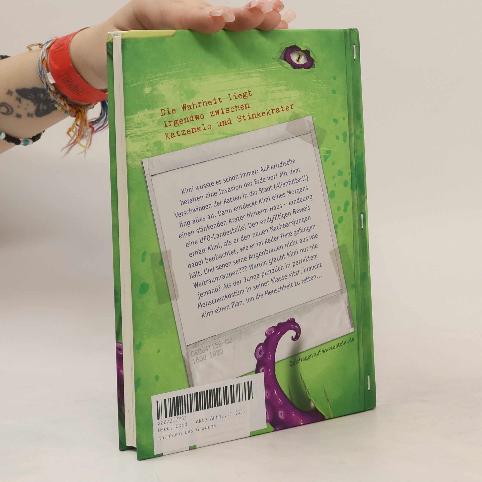 Die Wahrheit liegt irgendwo zwischen Katzenklo und Stinkekrater Kimi wusste es schon immer: Außerirdische bereiten eine Invasion der Erde vor! Mit dem Verschwinden der Katzen in der Stadt (Alienfutter!!) fing alles an. Dann entdeckte Kimi eines Morgens einen stinkenden Krater hinterm Haus – eindeutig eine UFO-Landestelle! Den endgültigen Beweis erhält Kimi, als er den neuen Nachbarsjungen dabei beobachtet, wie er im Keller Tiere gefangen hält. Und sehen seine Augenbrauen nicht aus wie Weltraumraupen??? Warum glaubt Kimi nur nie jemand? Als der Nachbarsjunge plötzlich in perfektem Menschenkostüm in seiner Klasse sitzt, braucht Kimi einen Plan, um die Menschheit zu retten…