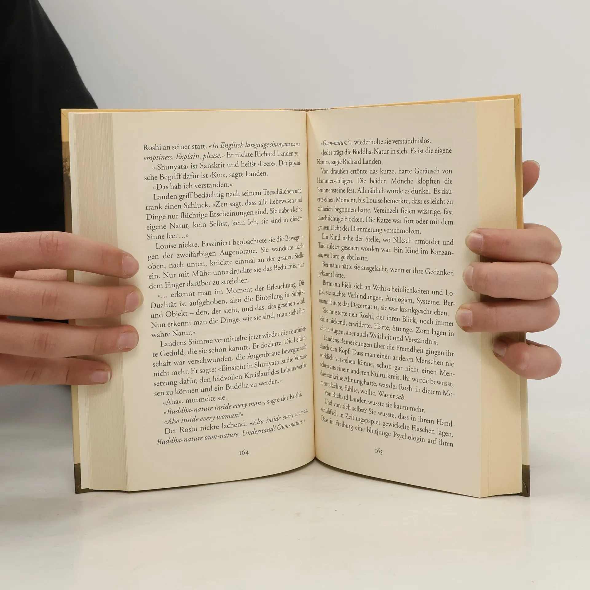 Louise Bonì, Hauptkommissarin der Freiburger Kripo aus dem Dezernat Kapitalverbrechen, 42 Jahre alt, geschieden, steht vor einem tristen Winterwochenende und den Schatten der Vergangenheit. Doch dann stört ein Anruf des Dezernatsleiters die Erinnerung an die Toten und Verflossenen, und Louise bekommt den merkwürdigsten Auftrag ihrer Karriere als Polizistin: Sie soll einen japanischen Mönch suchen, der in Sandalen und Kutte durch die verschneite Winterödnis östlich von Freiurg geht, und herausfinden, was er vorhat. Widerwillig macht sie sich auf den Weg. Als sie den Mönch eingeholt hat, wird ihr rasch zweierlei klar: Er ist verletzt, und er ist auf der Flucht. Mühsam kann Louise die Hintergründe aufdecken und kommt so einem schrecklichen Verbrechen auf die Spur, in dessen Sog sich auch ihr eigenes Leben entscheidend verändert.