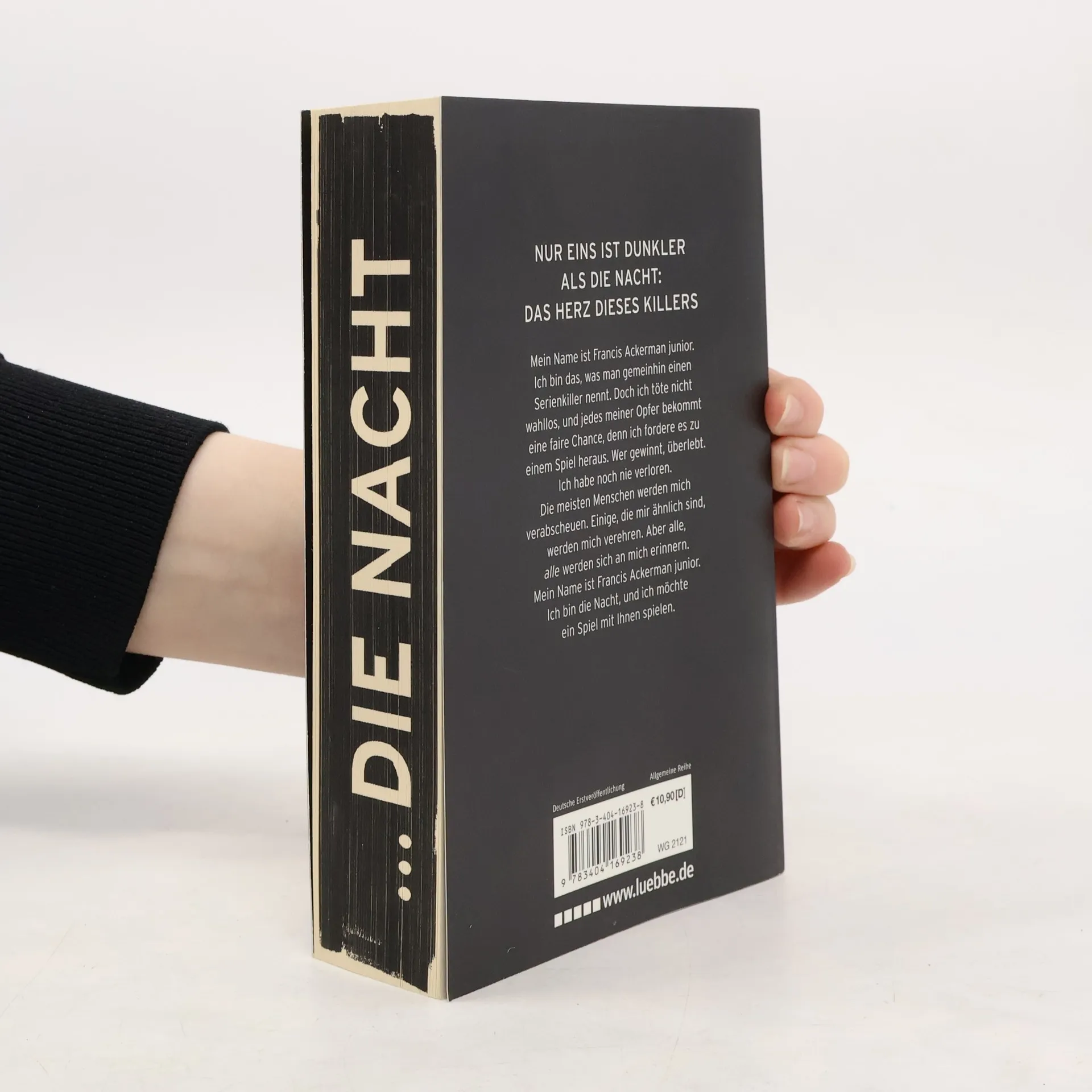 Mein Name ist Francis Ackerman junior. Ich bin das, was man gemeinhin einen Serienkiller nennt. Doch ich töte nicht wahllos, und jedes meiner Opfer bekommt eine faire Chance, denn ich fordere es zu einem Spiel heraus. Wer gewinnt, überlebt. Ich habe noch nie verloren. Die meisten Menschen werden mich verabscheuen. Einige, die mir ähnlich sind, werden mich verehren. Aber alle, alle werden sich an mich erinnern. Mein Name ist Francis Ackerman junior. Ich bin die Nacht, und ich möchte ein Spiel mit Ihnen spielen.